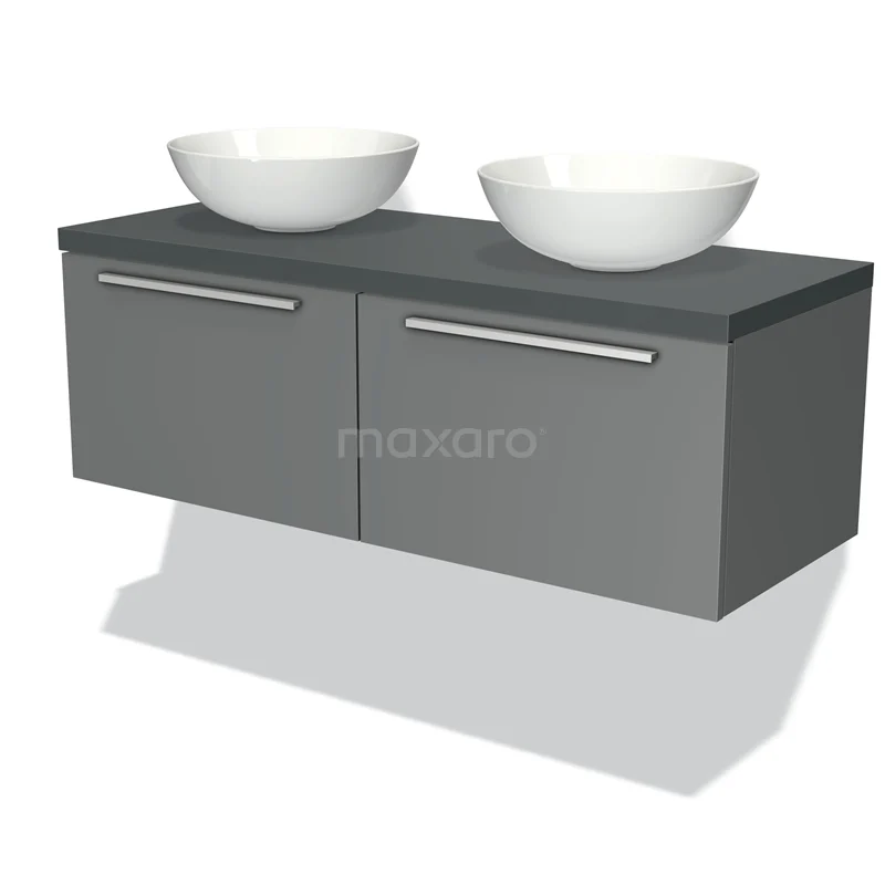 Modulo Plato Badmöbel mit Aufsatzwaschbecken | 120 cm Mittelgrau Flach front Dunkelgrau blatt 2 nebeneinanderliegende Schubladen