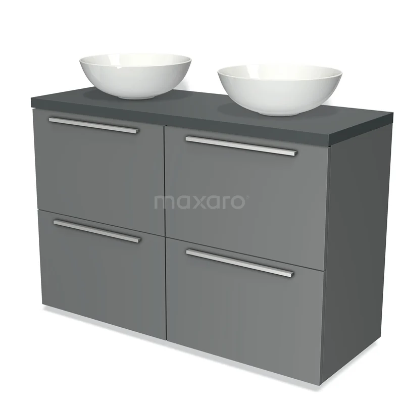 Modulo Plato Badmöbel mit Aufsatzwaschbecken | 120 cm Mittelgrau Flach front Dunkelgrau blatt 4 hohe Schubladen