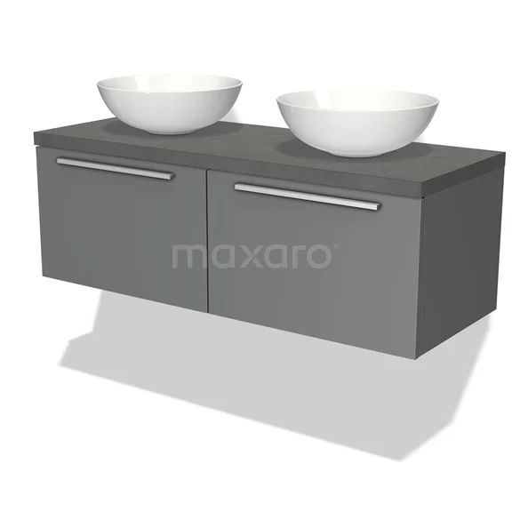 Modulo Plato Badmöbel mit Aufsatzwaschbecken | 120 cm Mittelgrau Flach front Dunkelgrauer Beton blatt 2 nebeneinanderliegende Schubladen