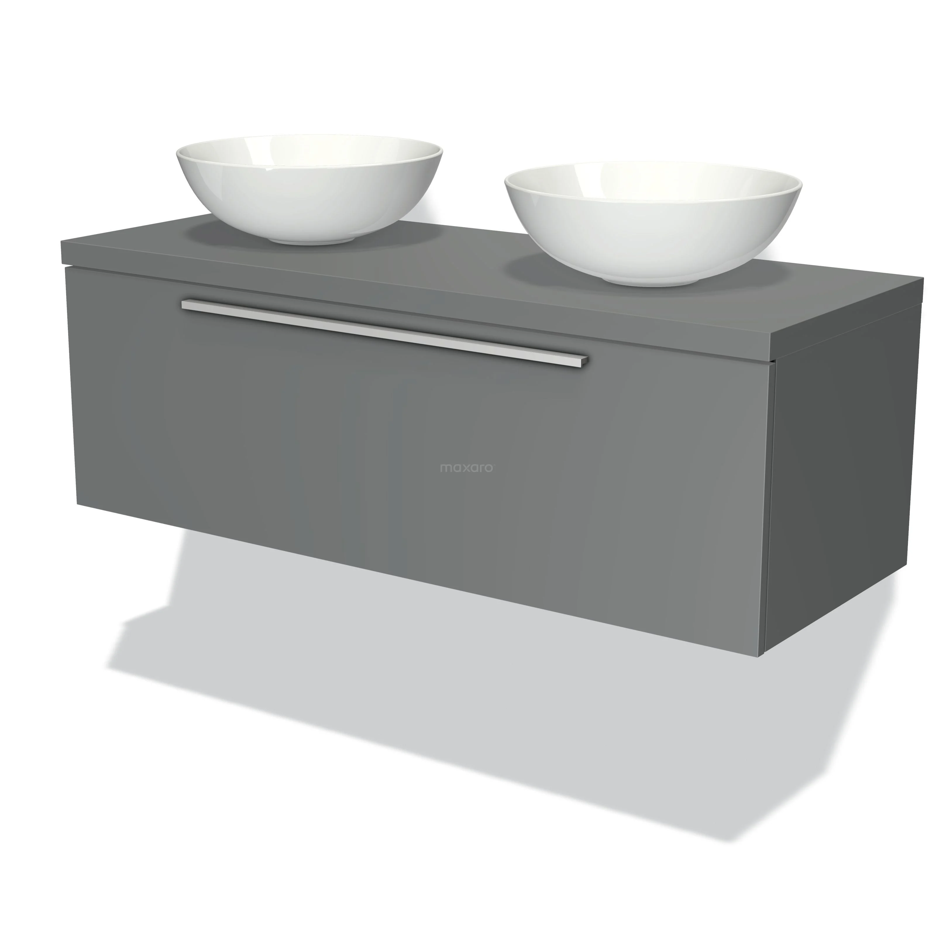 Modulo Plato Badmöbel mit Aufsatzwaschbecken | 120 cm Mittelgrau Flach front Mittelgrau blatt 1 Schublade