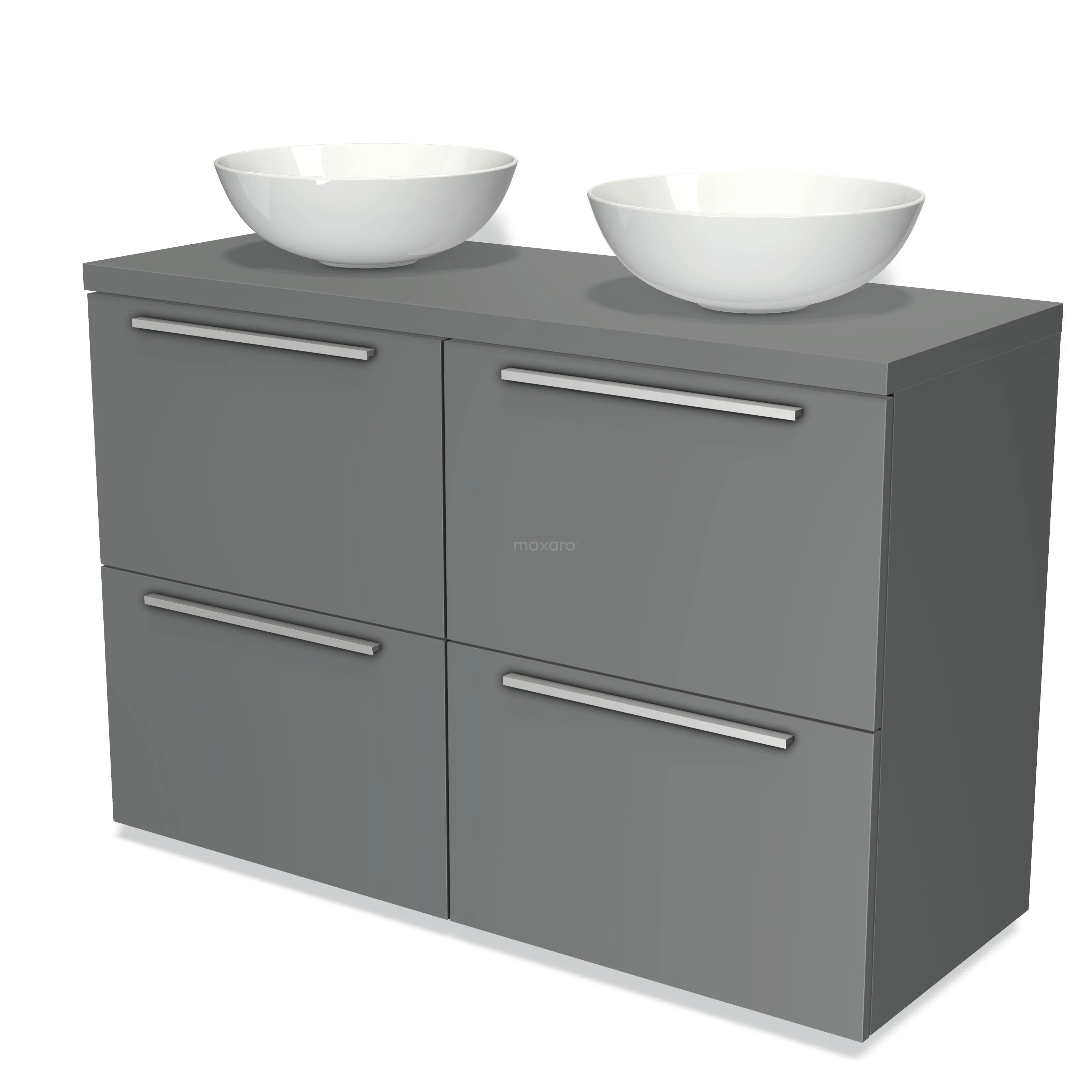 Modulo Plato Badmöbel mit Aufsatzwaschbecken | 120 cm Mittelgrau Flach front Mittelgrau blatt 4 hohe Schubladen