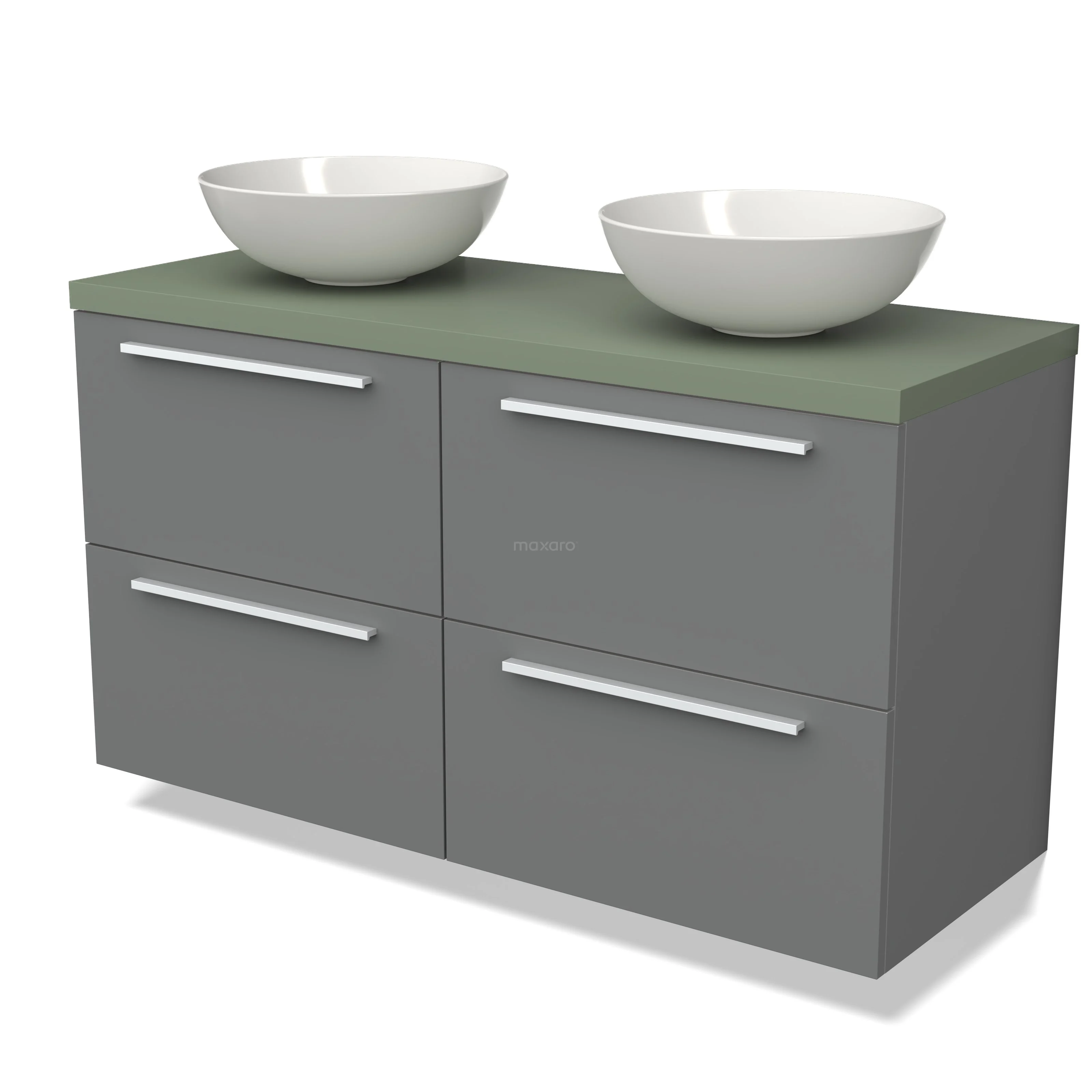 Modulo Plato Badmöbel mit Aufsatzwaschbecken | 120 cm Mittelgrau Flach front Salbeigrün blatt 4 Schubladen