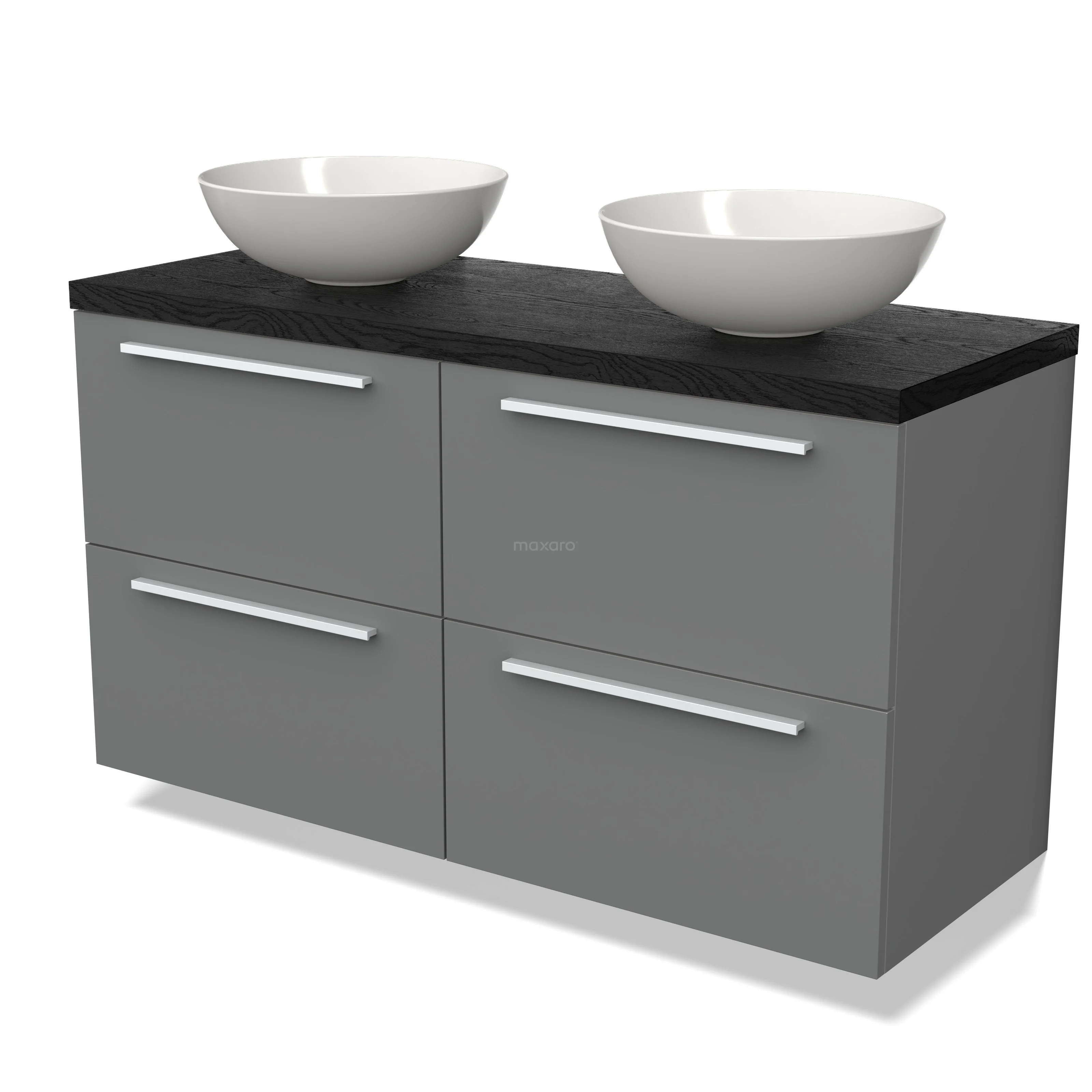 Modulo Plato Badmöbel mit Aufsatzwaschbecken | 120 cm Mittelgrau Flach front Schwarze Eiche blatt 4 Schubladen