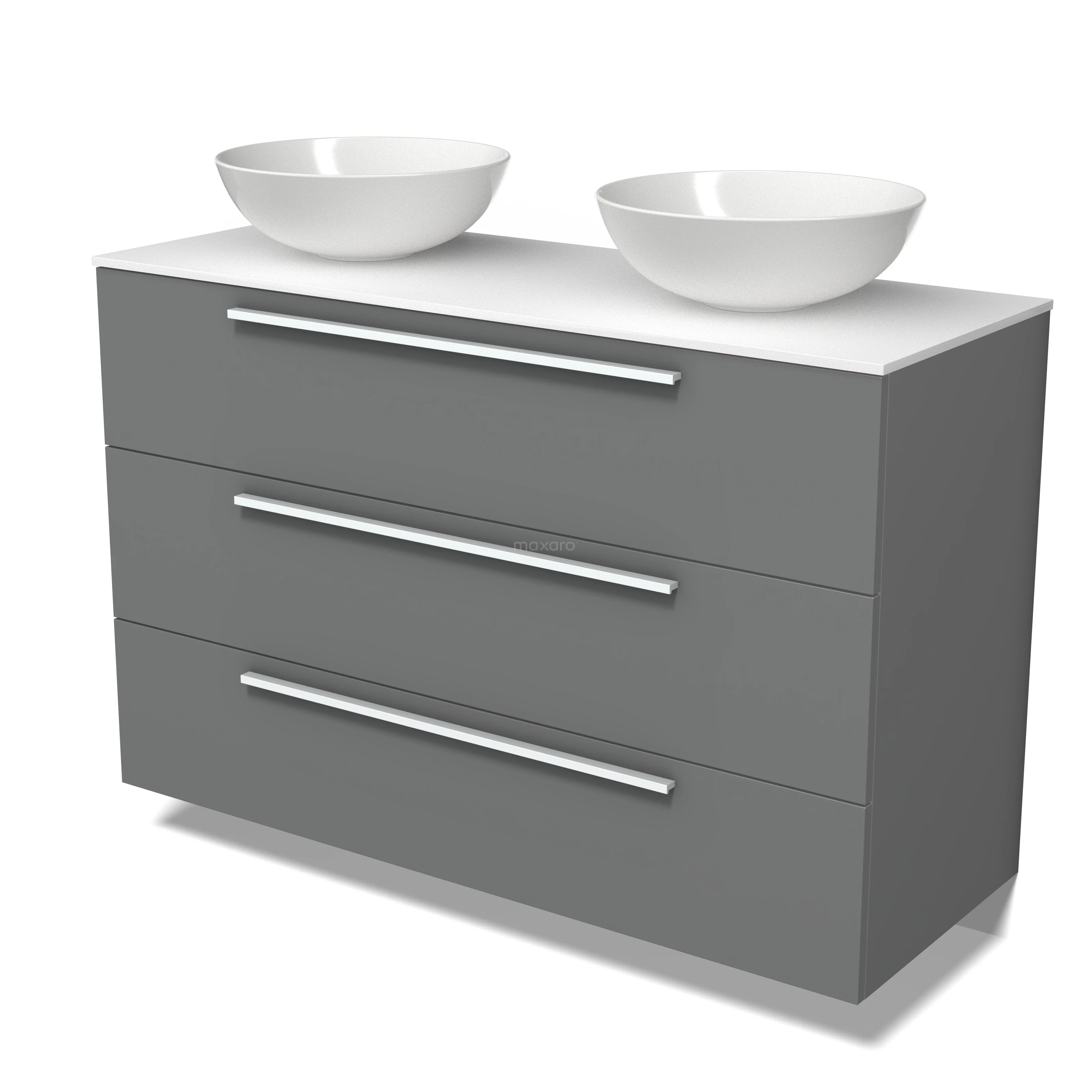 Modulo Plato Badmöbel mit Aufsatzwaschbecken | 120 cm Mittelgrau Flach front Solid Surface blatt 3 Schubladen