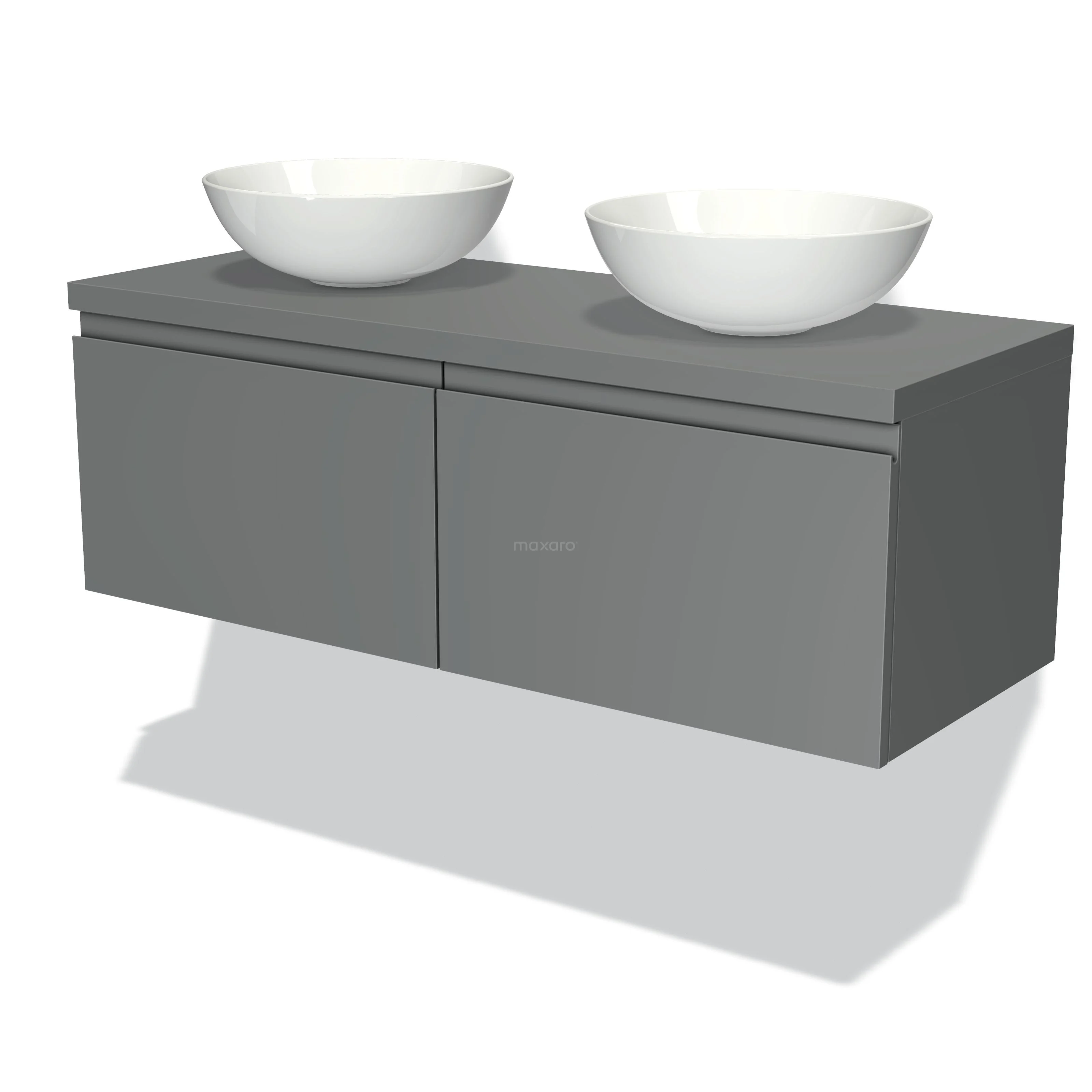 Modulo Plato Badmöbel mit Aufsatzwaschbecken | 120 cm Mittelgrau Grifflos front Mittelgrau blatt 2 nebeneinanderliegende Schubladen
