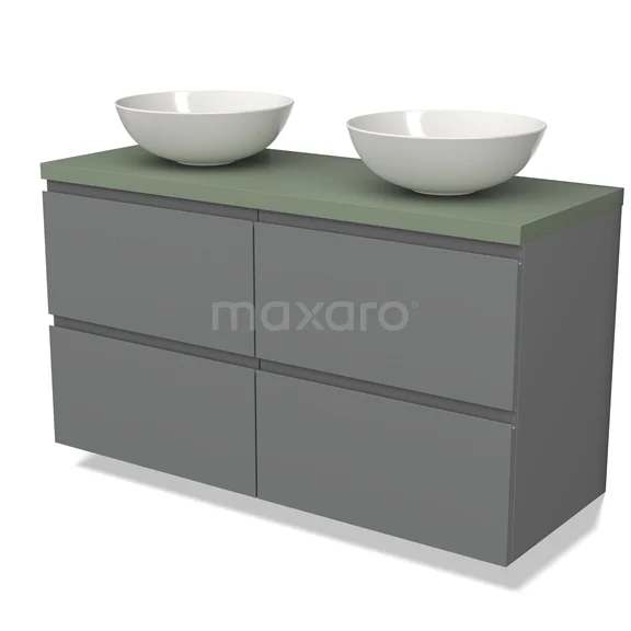 Modulo Plato Badmöbel mit Aufsatzwaschbecken | 120 cm Mittelgrau Grifflos front Salbeigrün blatt 4 Schubladen