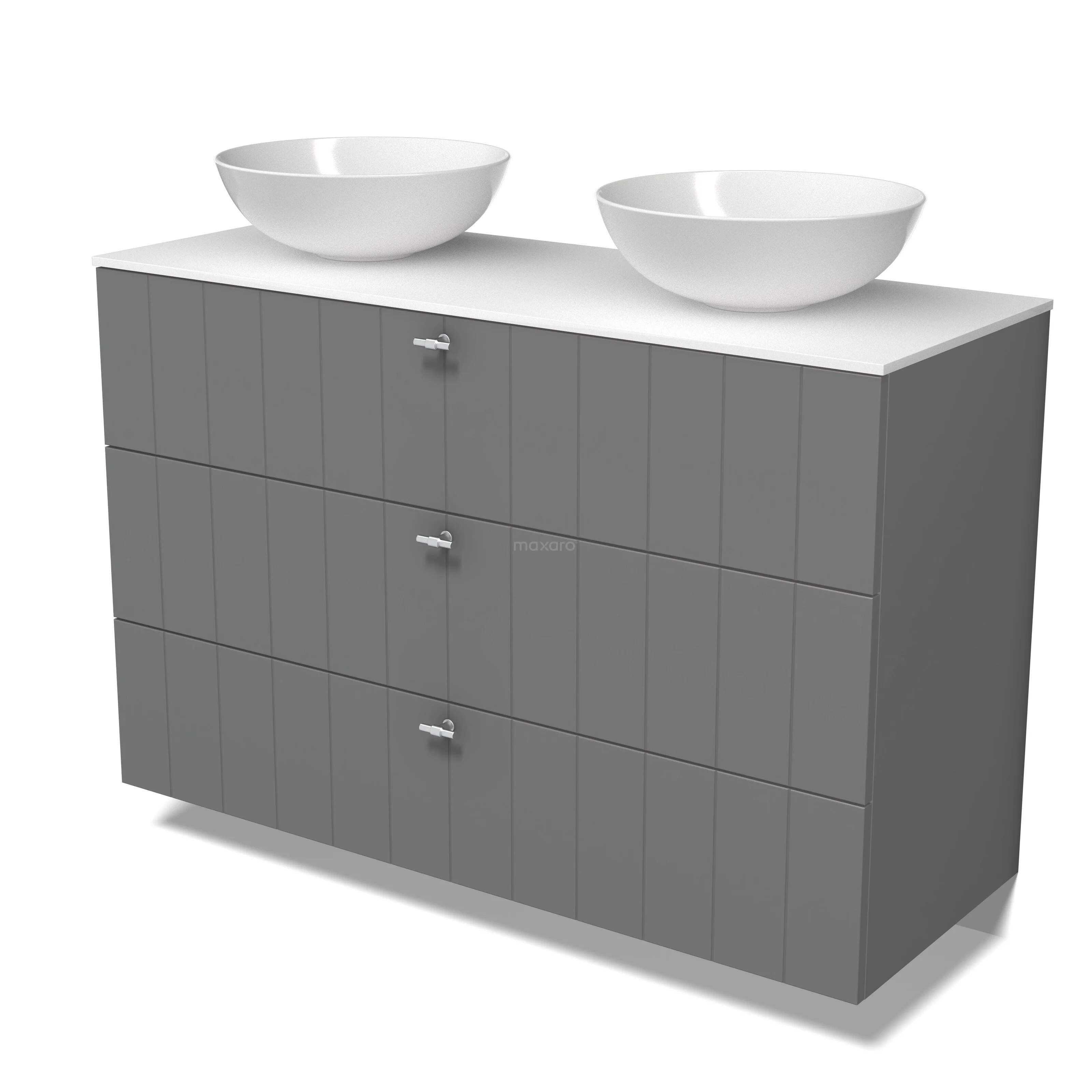 Modulo Plato Badmöbel mit Aufsatzwaschbecken | 120 cm Mittelgrau Lamelle front Solid Surface blatt 3 Schubladen