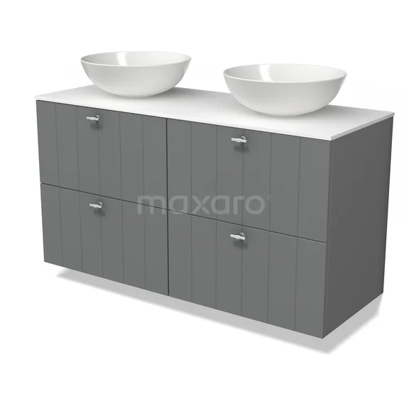 Modulo Plato Badmöbel mit Aufsatzwaschbecken | 120 cm Mittelgrau Lamelle front Solid Surface blatt 4 Schubladen