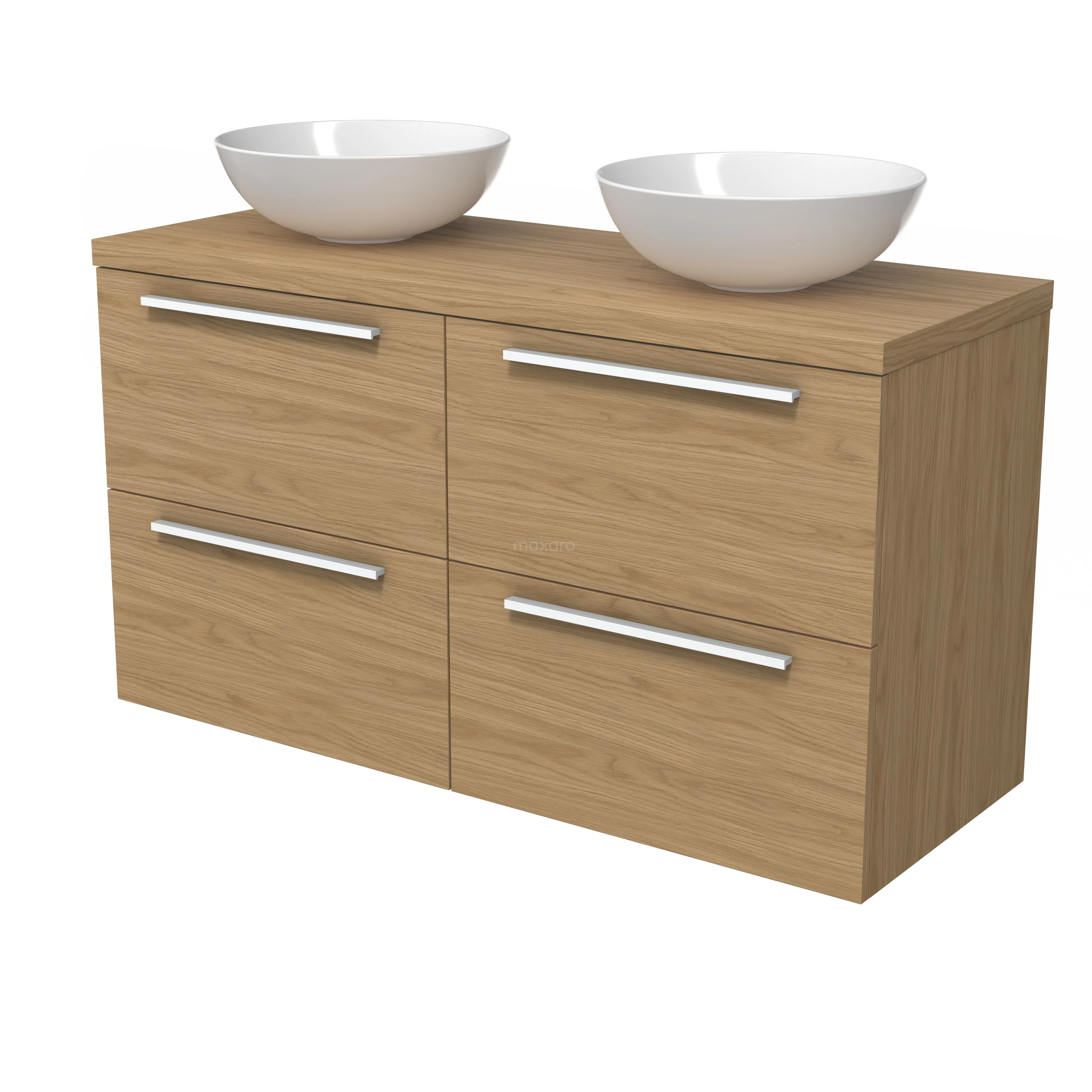 Modulo Plato Badmöbel mit Aufsatzwaschbecken | 120 cm Natürliches Furnier Flach front Natürliches Furnier blatt 4 Schubladen
