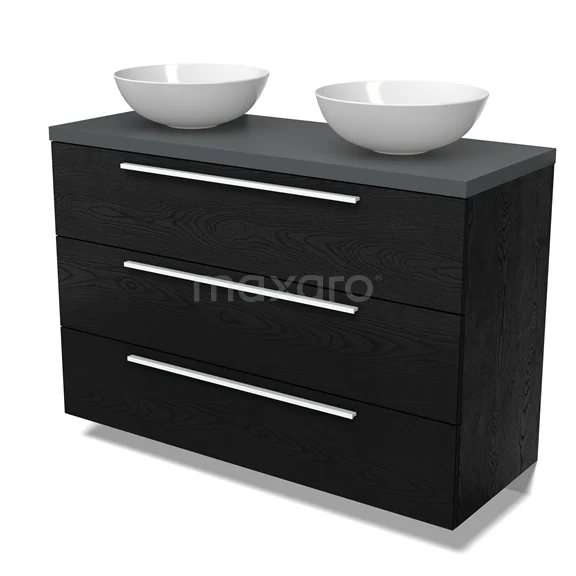 Modulo Plato Badmöbel mit Aufsatzwaschbecken | 120 cm Schwarze Eiche Flach front Dunkelgrau blatt 3 Schubladen