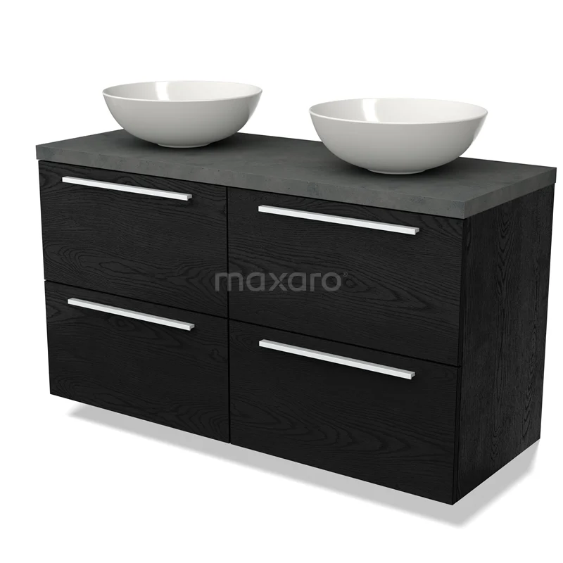 Modulo Plato Badmöbel mit Aufsatzwaschbecken | 120 cm Schwarze Eiche Flach front Dunkelgrauer Beton blatt 4 Schubladen