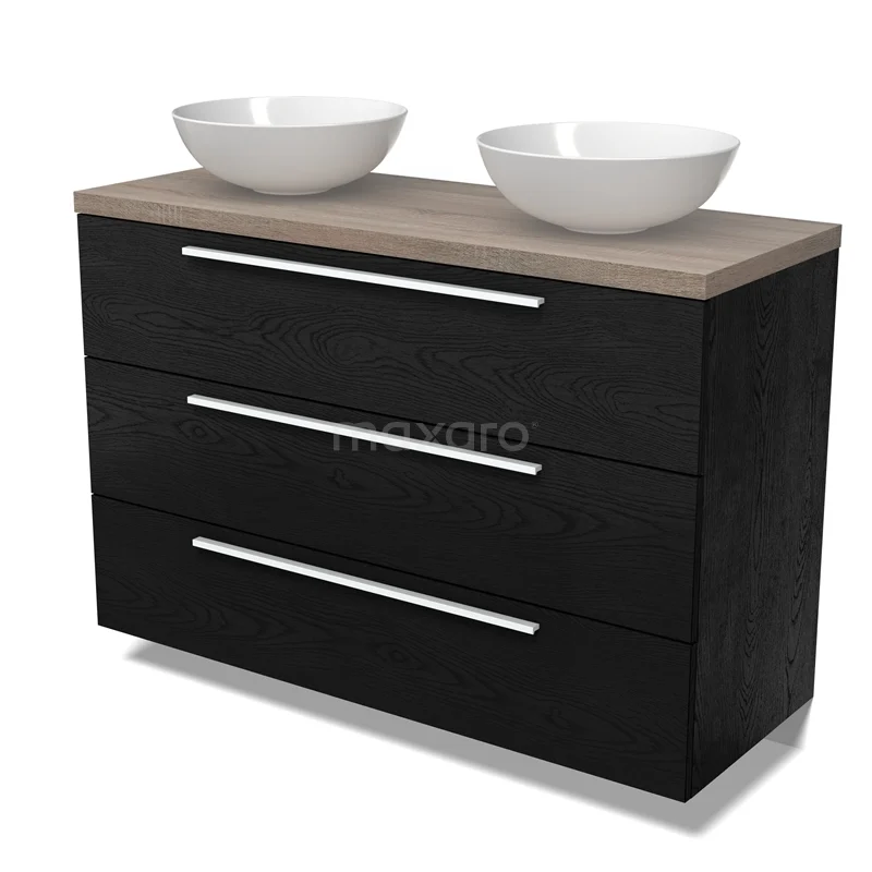 Modulo Plato Badmöbel mit Aufsatzwaschbecken | 120 cm Schwarze Eiche Flach front Eiche blatt 3 Schubladen