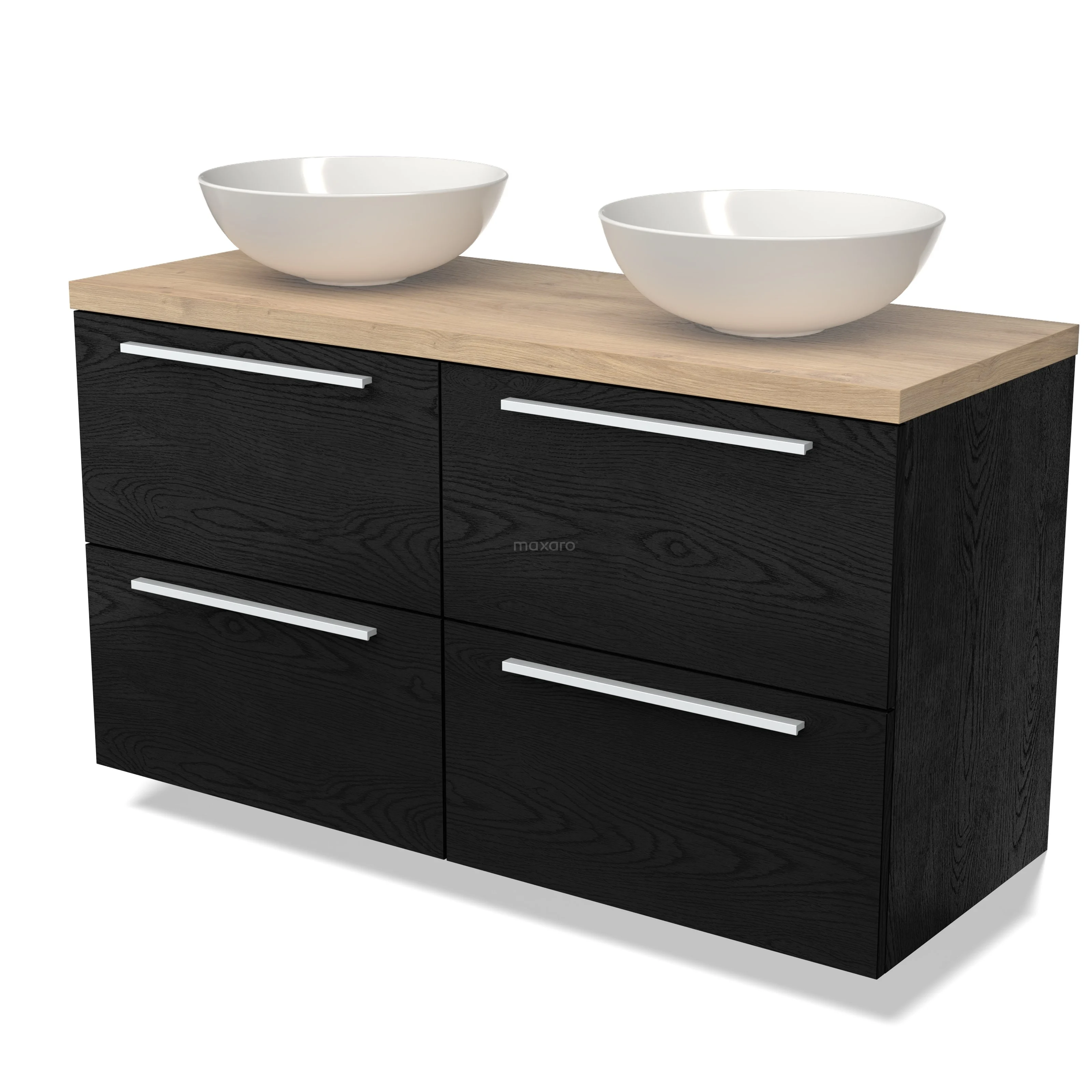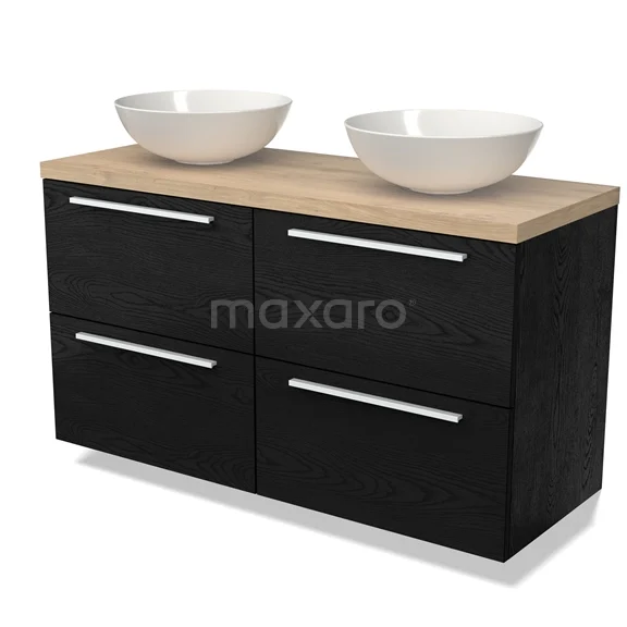 Modulo Plato Badmöbel mit Aufsatzwaschbecken | 120 cm Schwarze Eiche Flach front Hellbraune Eiche blatt 4 Schubladen