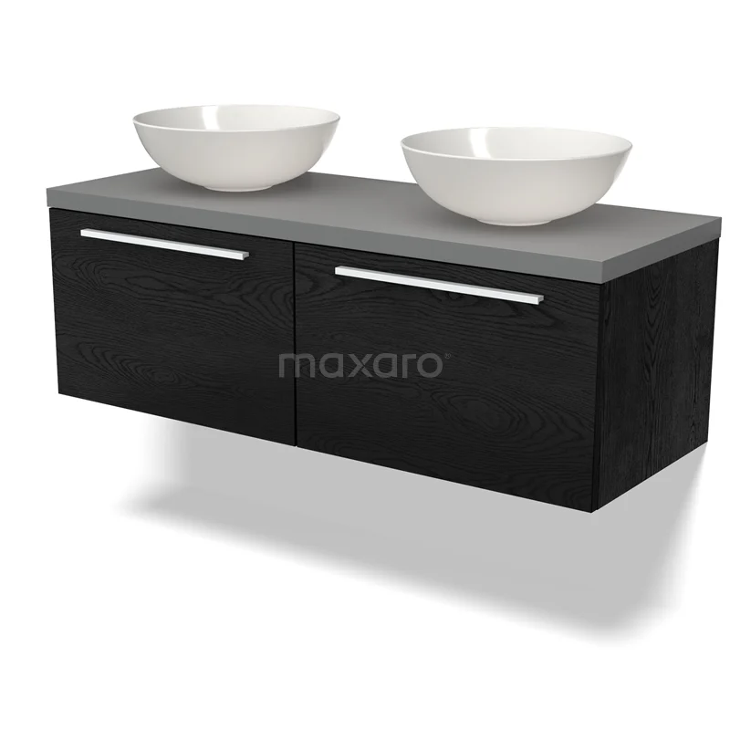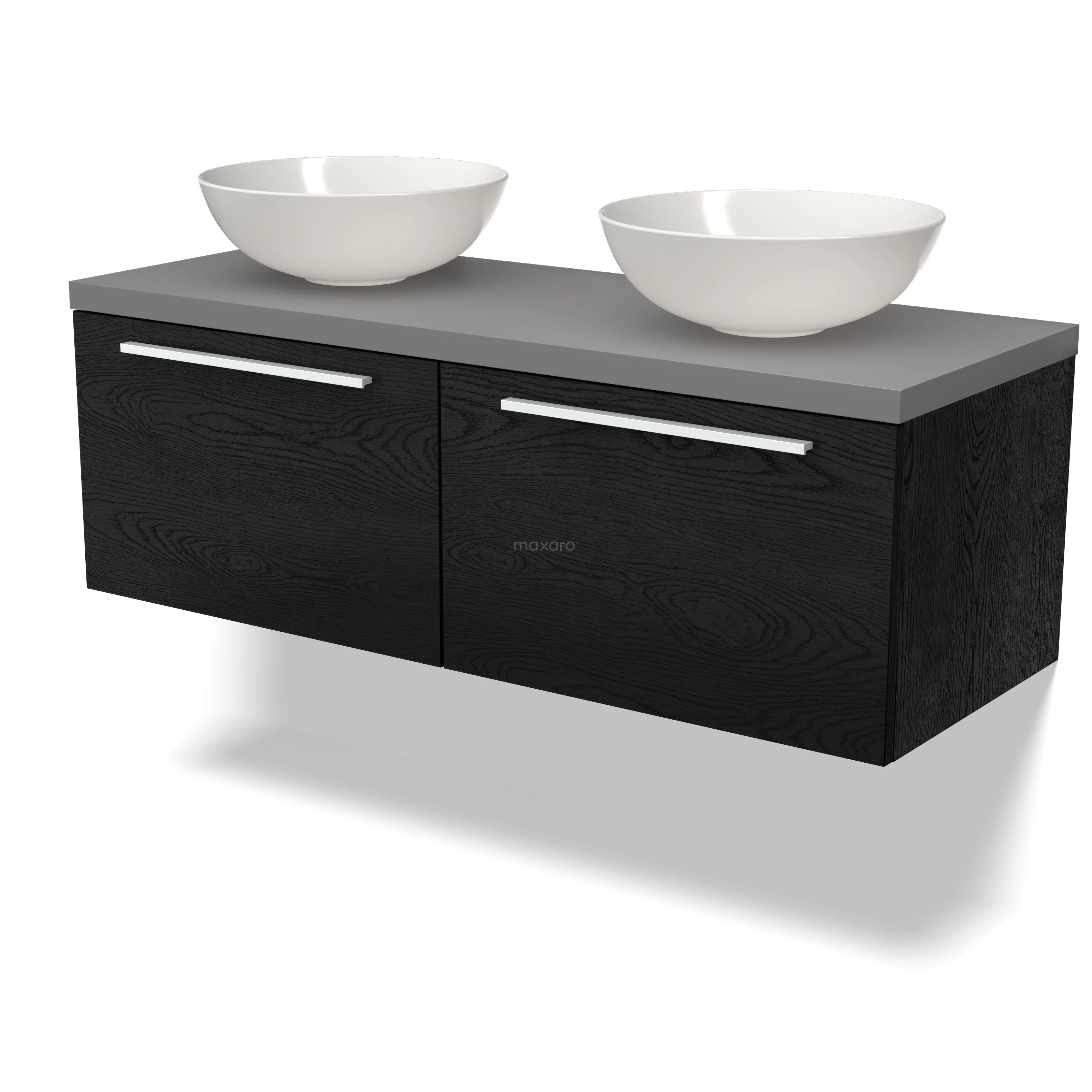 Modulo Plato Badmöbel mit Aufsatzwaschbecken | 120 cm Schwarze Eiche Flach front Mittelgrau blatt 2 nebeneinanderliegende Schubladen