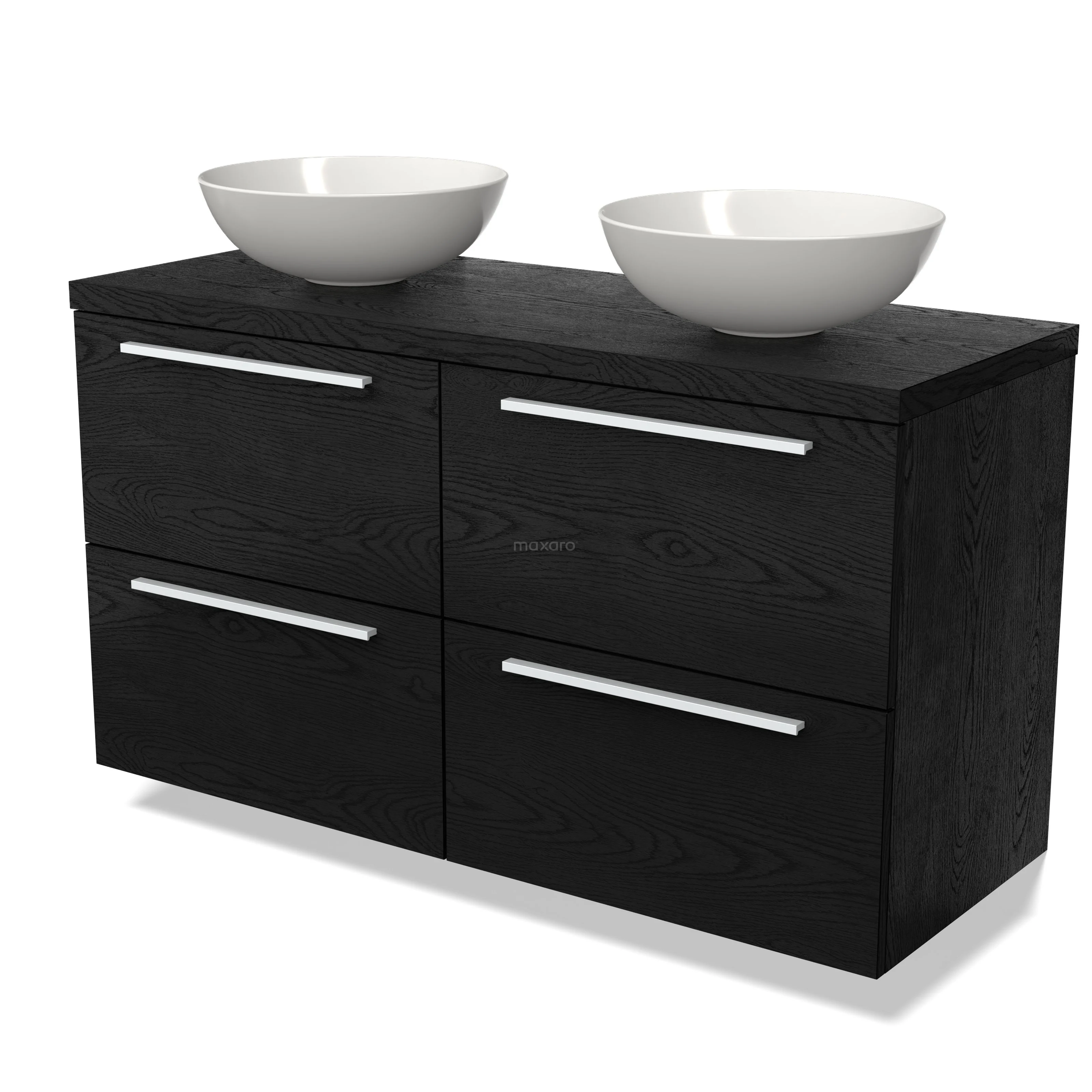 Modulo Plato Badmöbel mit Aufsatzwaschbecken | 120 cm Schwarze Eiche Flach front Schwarze Eiche blatt 4 Schubladen
