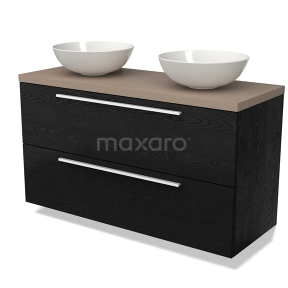 Modulo Plato Badmöbel mit Aufsatzwaschbecken | 120 cm Schwarze Eiche Flach front Taupe blatt 2 übereinanderliegende Schubladen