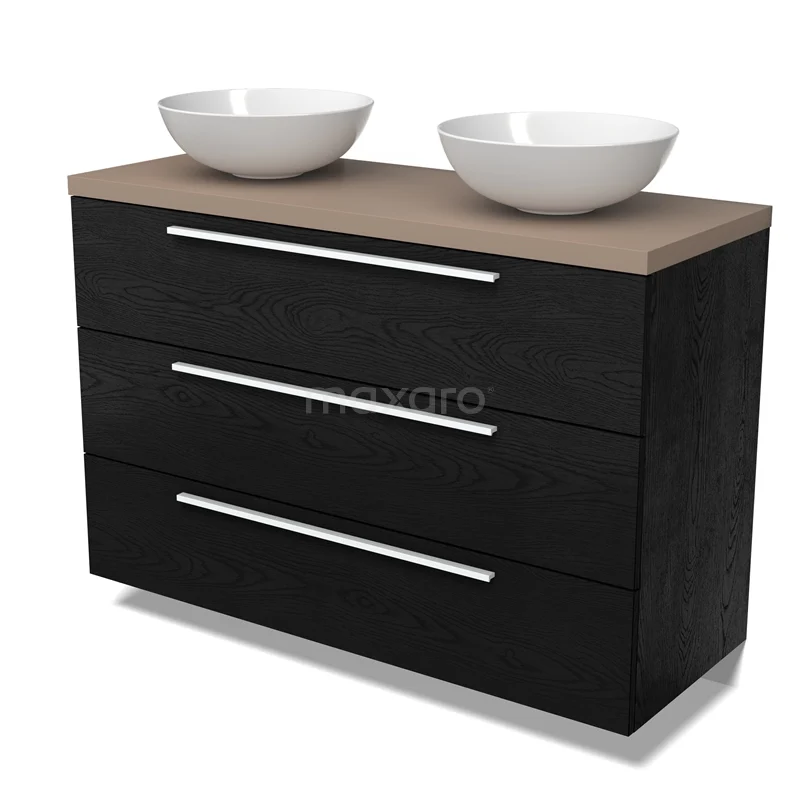 Modulo Plato Badmöbel mit Aufsatzwaschbecken | 120 cm Schwarze Eiche Flach front Taupe blatt 3 Schubladen