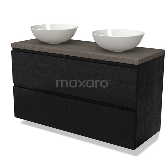 Modulo Plato Badmöbel mit Aufsatzwaschbecken | 120 cm Schwarze Eiche Grifflos front Dunkelbraune Eiche blatt 2 übereinanderliegende Schubladen