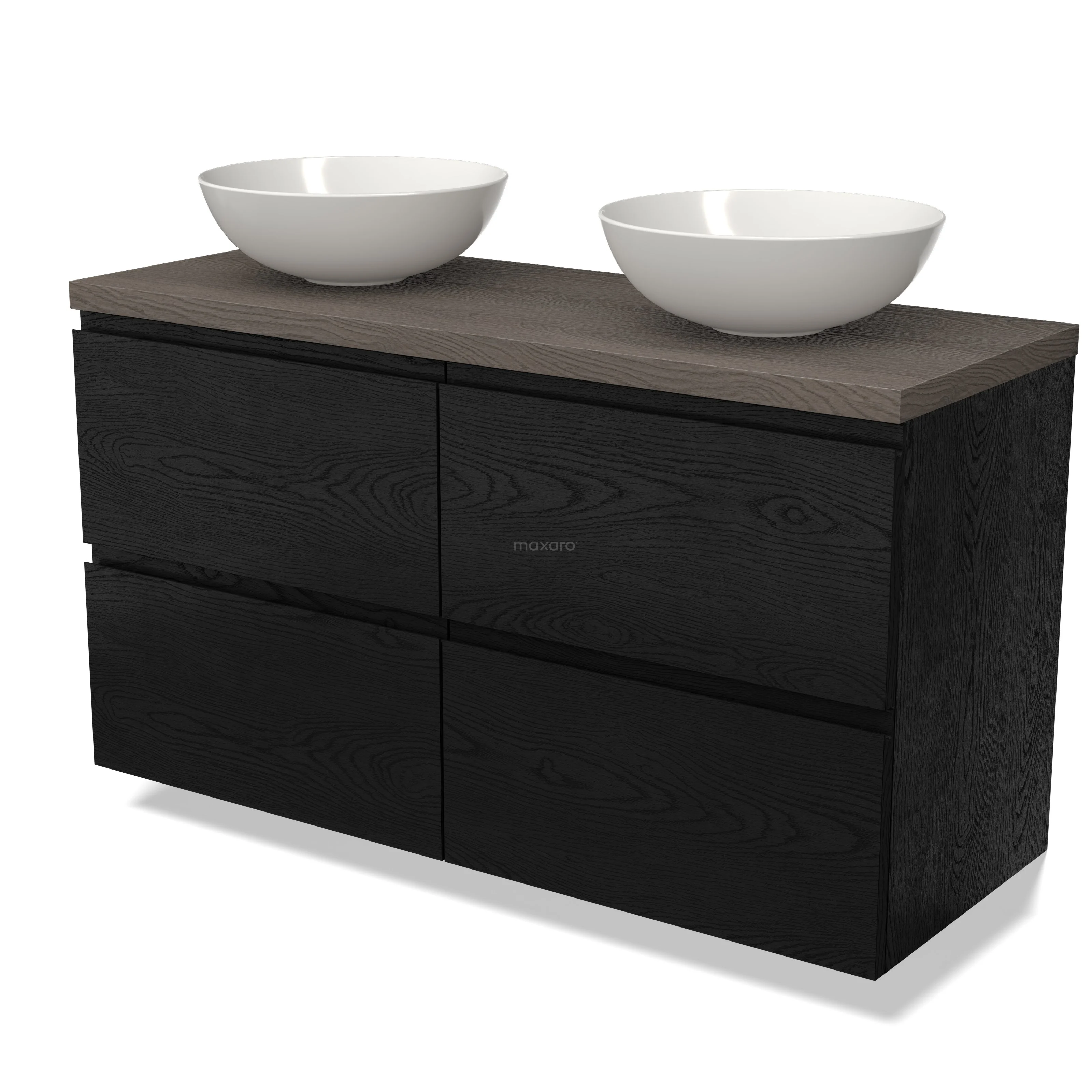 Modulo Plato Badmöbel mit Aufsatzwaschbecken | 120 cm Schwarze Eiche Grifflos front Dunkelbraune Eiche blatt 4 Schubladen