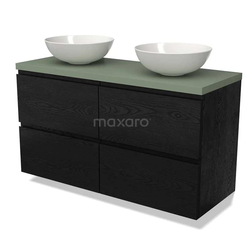 Modulo Plato Badmöbel mit Aufsatzwaschbecken | 120 cm Schwarze Eiche Grifflos front Salbeigrün blatt 4 Schubladen