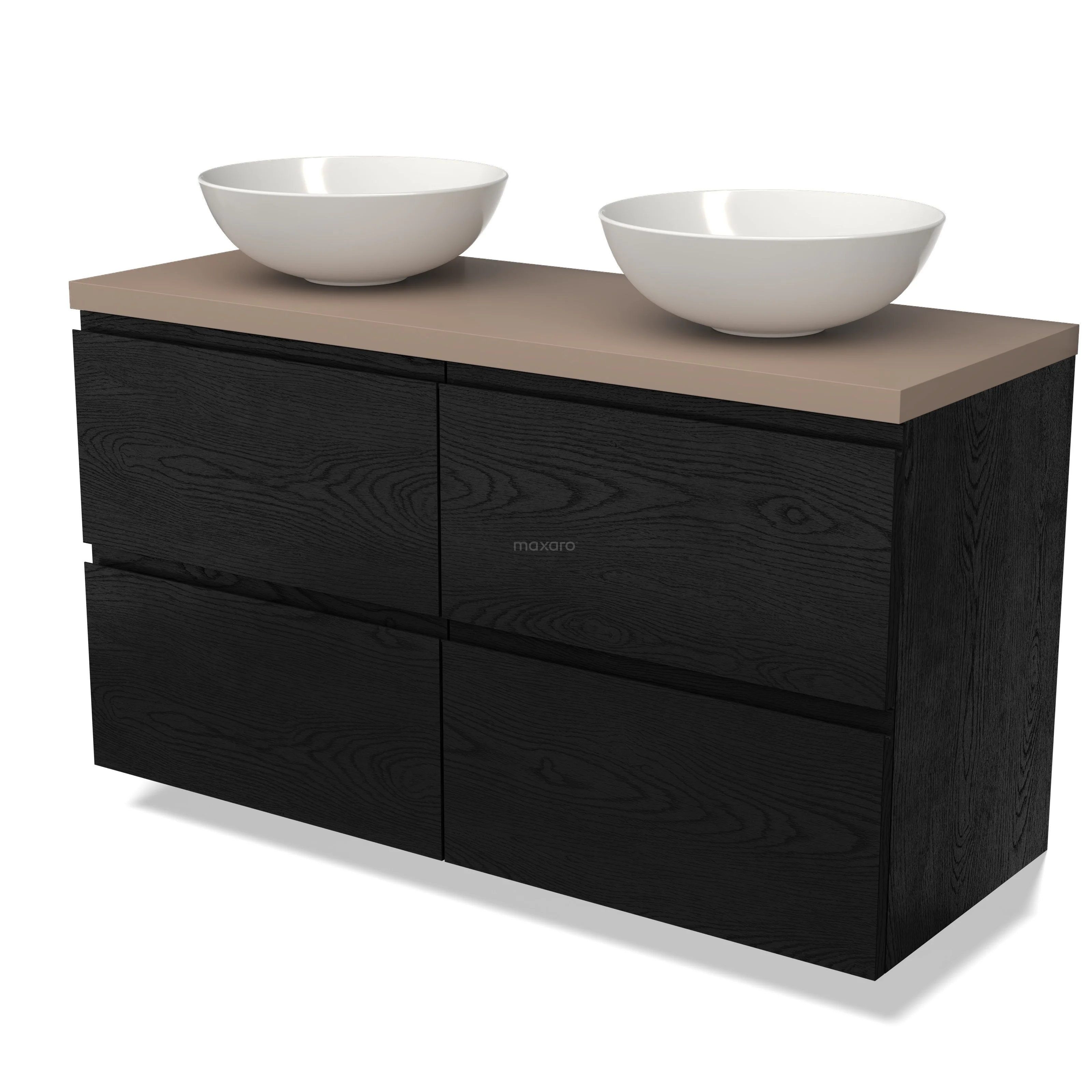 Modulo Plato Badmöbel mit Aufsatzwaschbecken | 120 cm Schwarze Eiche Grifflos front Taupe blatt 4 Schubladen