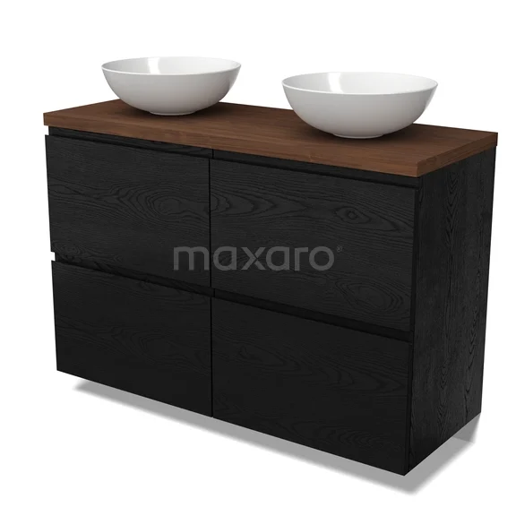 Modulo Plato Badmöbel mit Aufsatzwaschbecken | 120 cm Schwarze Eiche Grifflos front Walnuss blatt 4 hohe Schubladen