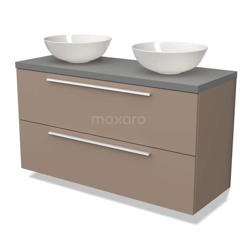 Modulo Plato Badmöbel mit Aufsatzwaschbecken | 120 cm Taupe Flach front Mittelgrau blatt 2 übereinanderliegende Schubladen