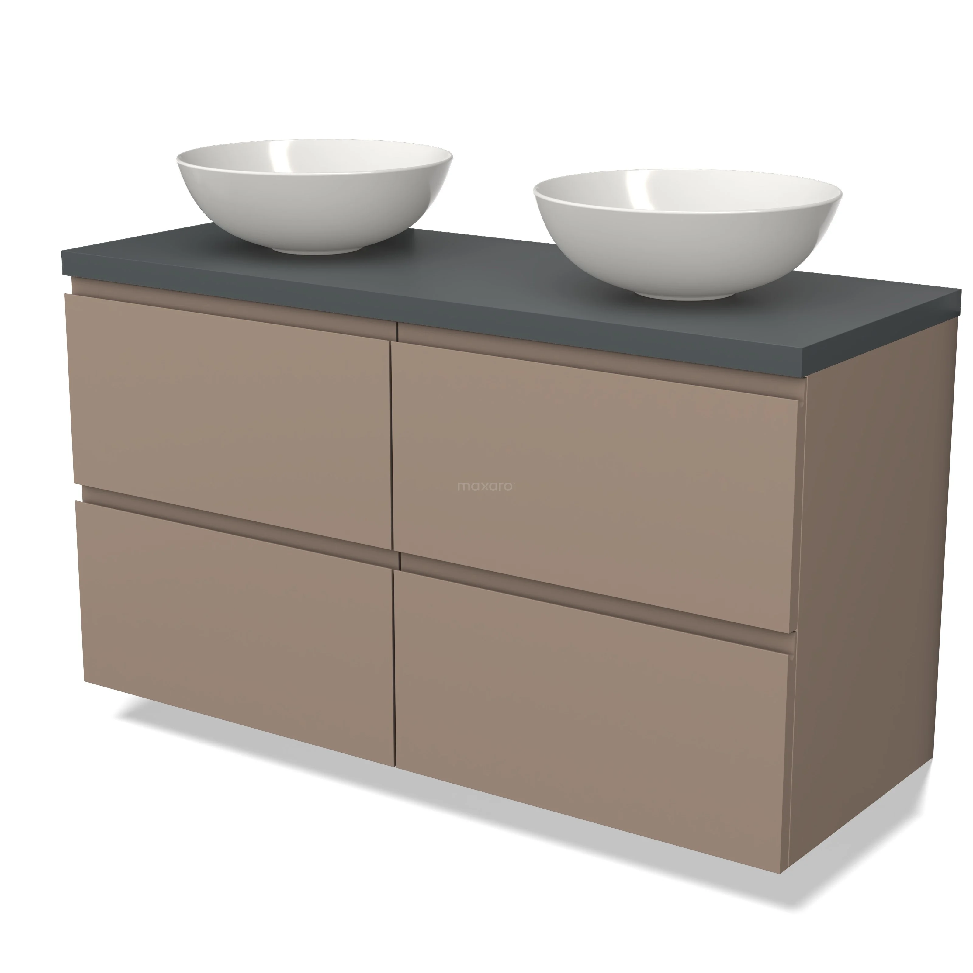 Modulo Plato Badmöbel mit Aufsatzwaschbecken | 120 cm Taupe Grifflos front Dunkelgrau blatt 4 Schubladen