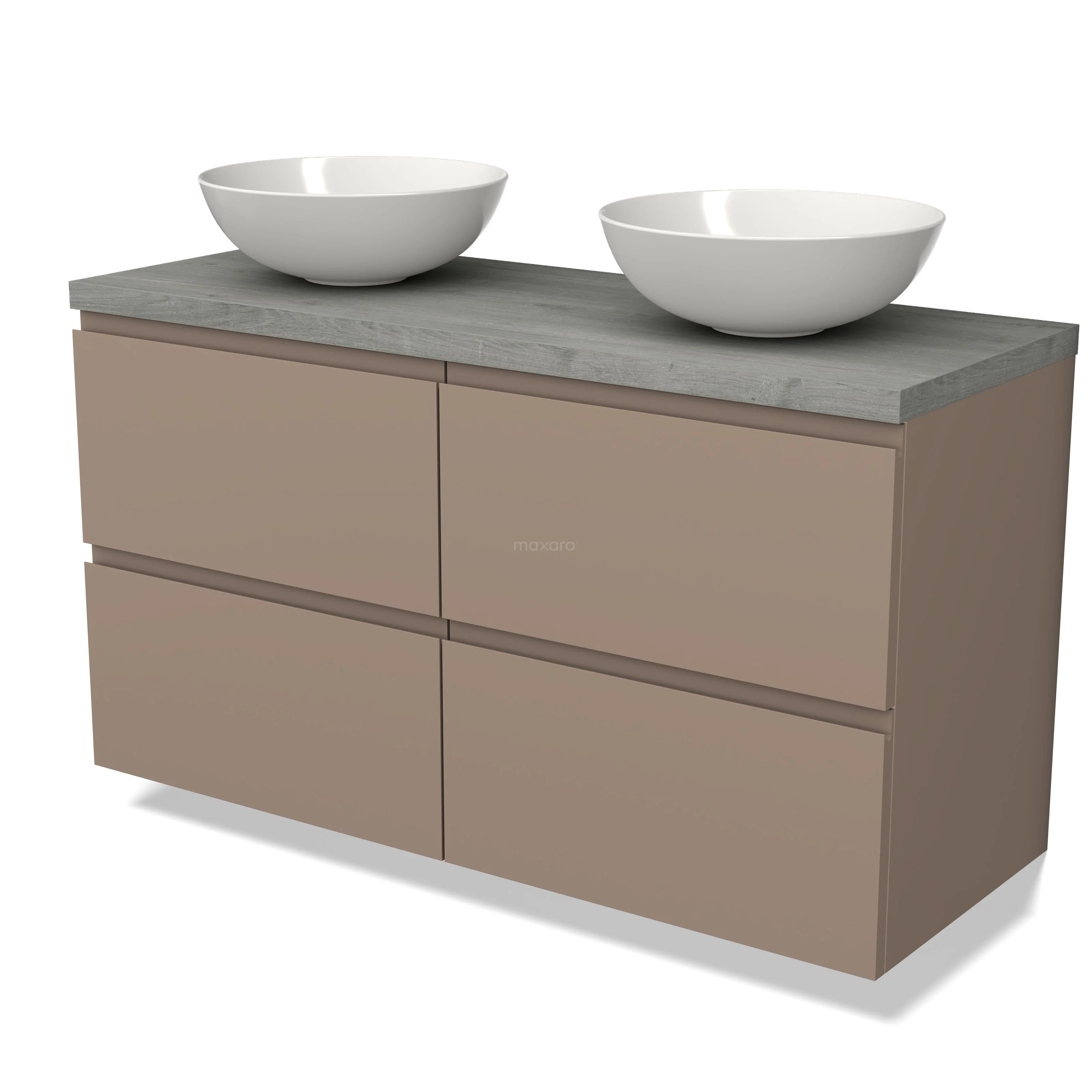 Modulo Plato Badmöbel mit Aufsatzwaschbecken | 120 cm Taupe Grifflos front Graue Eiche blatt 4 Schubladen