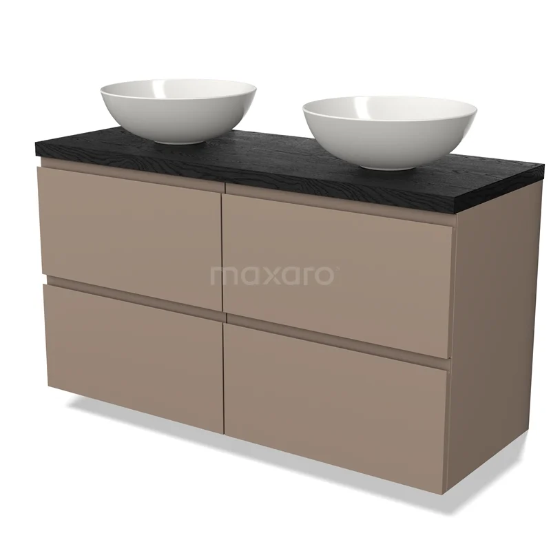 Modulo Plato Badmöbel mit Aufsatzwaschbecken | 120 cm Taupe Grifflos front Schwarze Eiche blatt 4 Schubladen