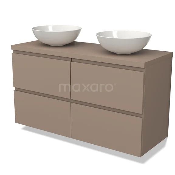 Modulo Plato Badmöbel mit Aufsatzwaschbecken | 120 cm Taupe Grifflos front Taupe blatt 4 Schubladen
