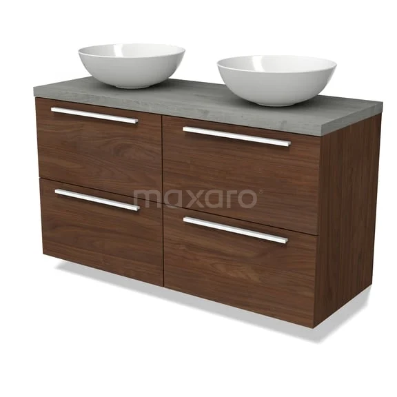 Modulo Plato Badmöbel mit Aufsatzwaschbecken | 120 cm Walnuss Flach front Graue Eiche blatt 4 Schubladen