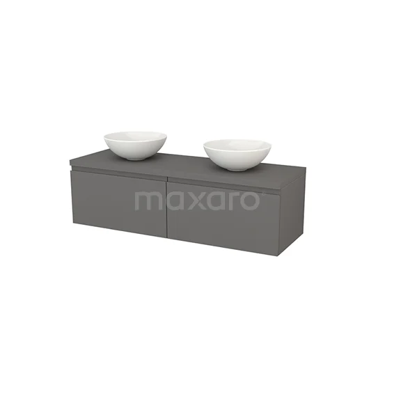 Modulo+ Plato Badmöbel mit Aufsatzwaschbecken | 140 cm Basalt Grifflos front Basalt blatt 2 nebeneinanderliegende Schubladen