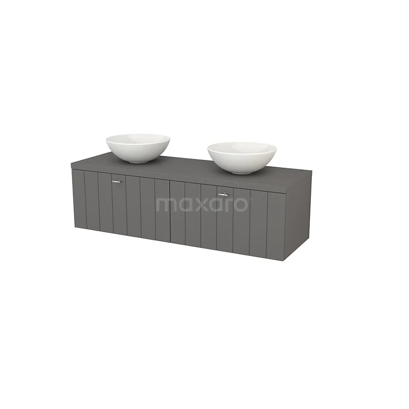 Modulo+ Plato Badmöbel mit Aufsatzwaschbecken | 140 cm Basalt Lamelle front Basalt blatt 2 nebeneinanderliegende Schubladen