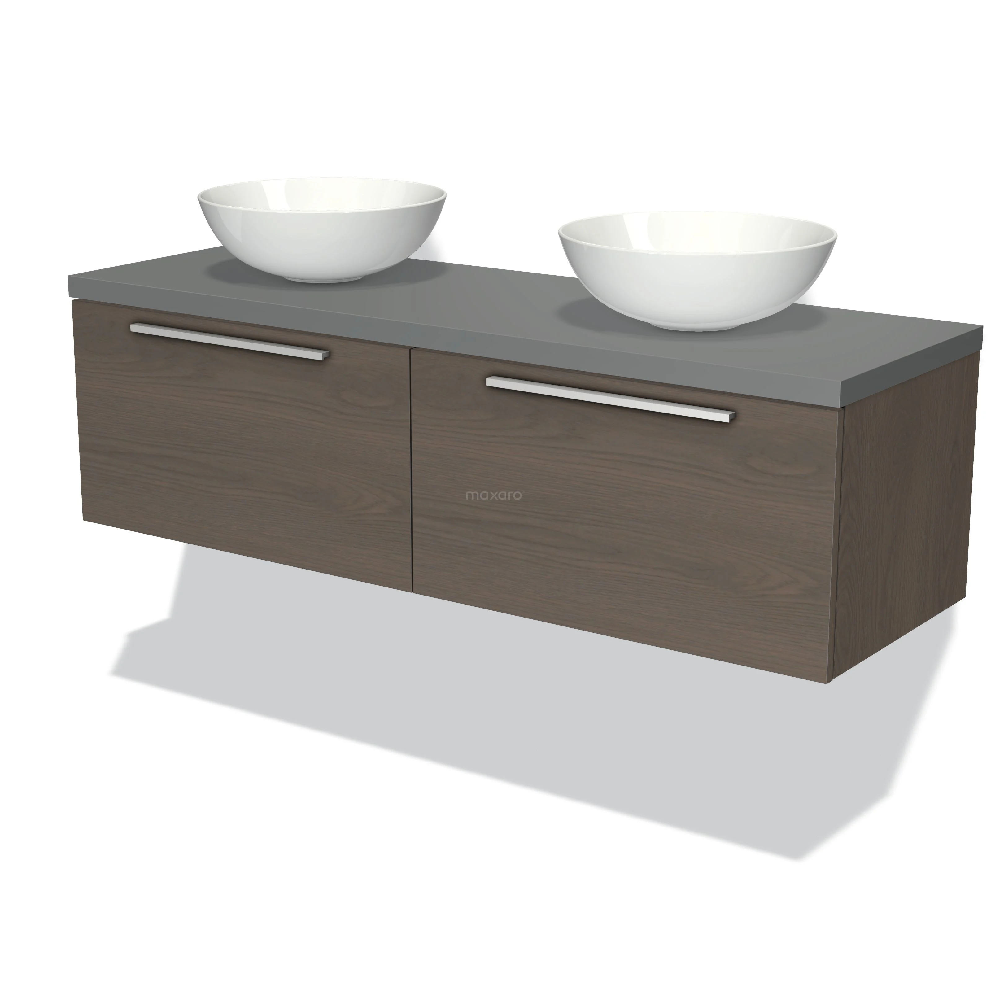 Modulo Plato Badmöbel mit Aufsatzwaschbecken | 140 cm Dunkelbraune Eiche Flach front Mittelgrau blatt 2 nebeneinanderliegende Schubladen
