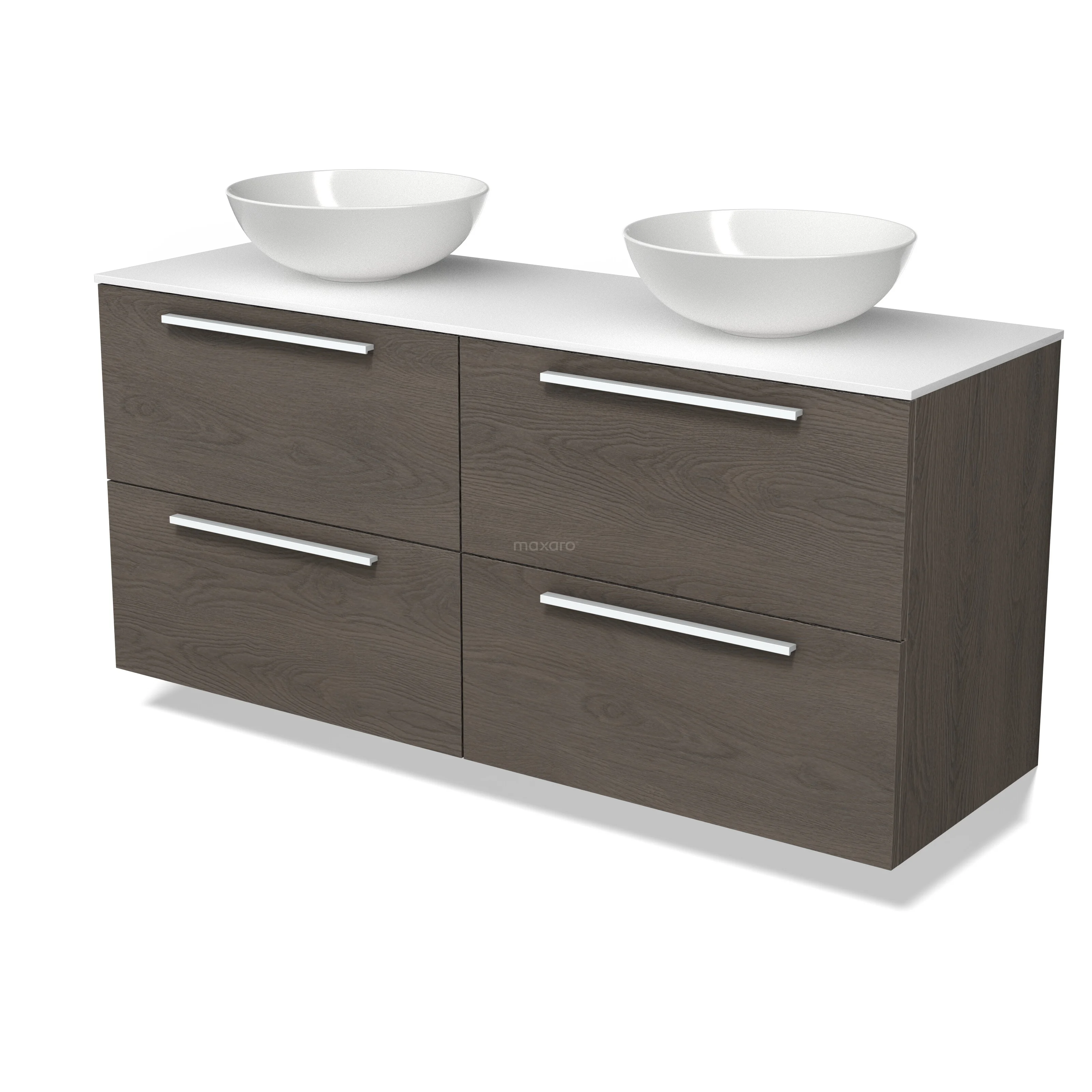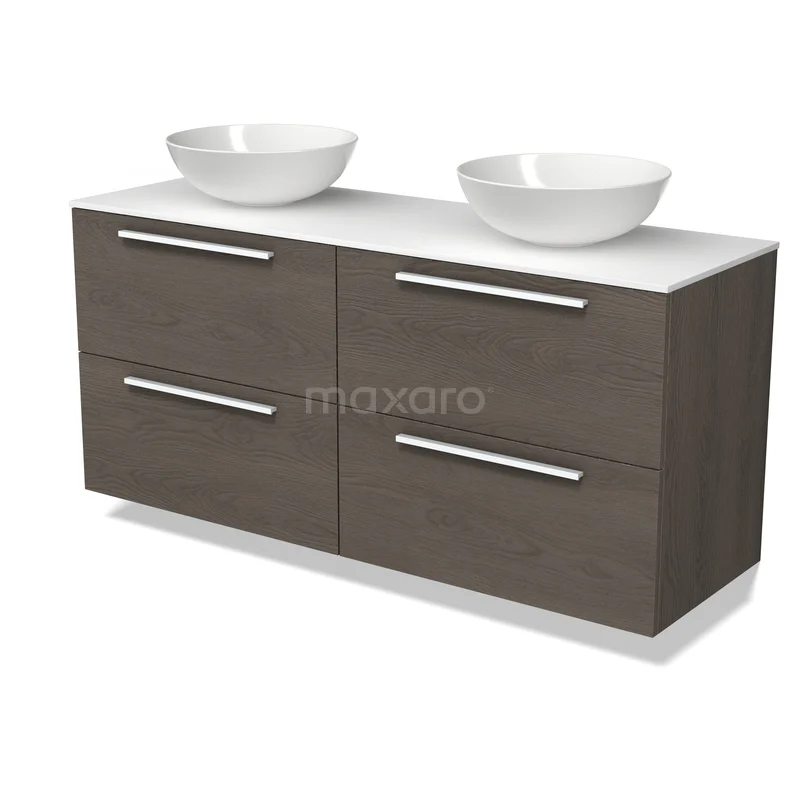 Modulo Plato Badmöbel mit Aufsatzwaschbecken | 140 cm Dunkelbraune Eiche Flach front Solid Surface blatt 4 Schubladen