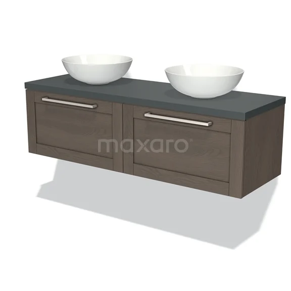 Modulo Plato Badmöbel mit Aufsatzwaschbecken | 140 cm Dunkelbraune Eiche Rahmen front Dunkelgrau blatt 2 nebeneinanderliegende Schubladen