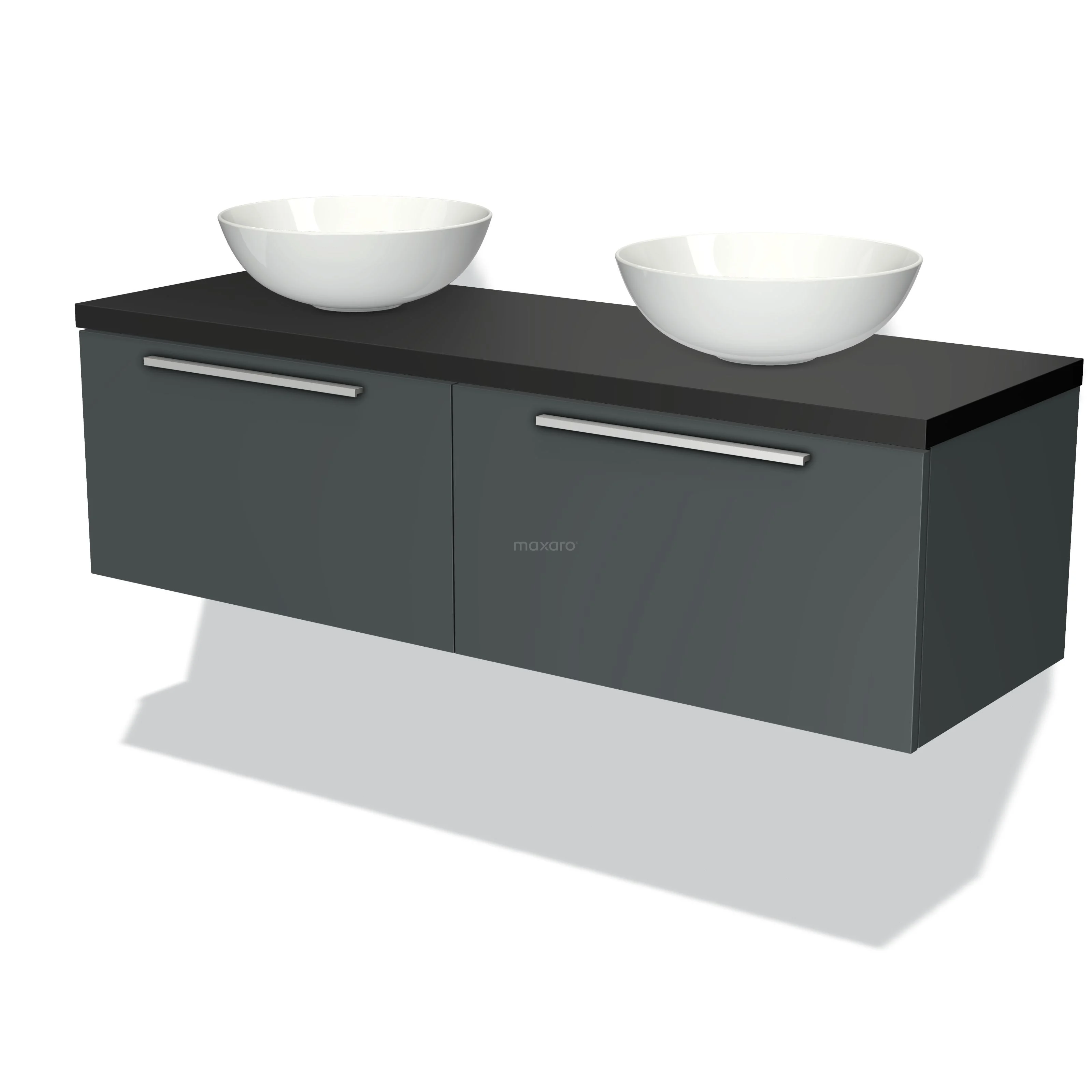 Modulo Plato Badmöbel mit Aufsatzwaschbecken | 140 cm Dunkelgrau Flach front Matt Schwarz blatt 2 nebeneinanderliegende Schubladen