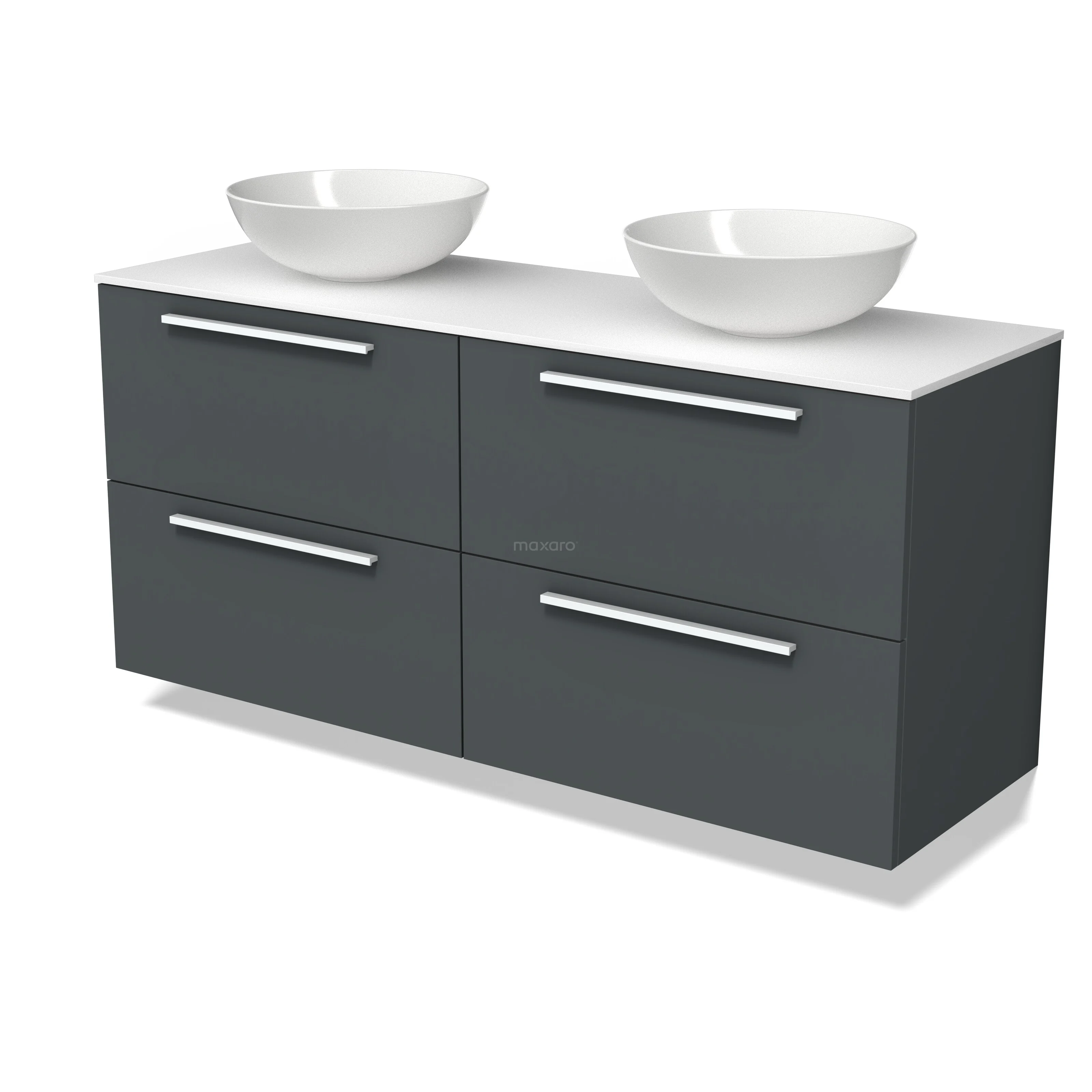 Modulo Plato Badmöbel mit Aufsatzwaschbecken | 140 cm Dunkelgrau Flach front Solid Surface blatt 4 Schubladen