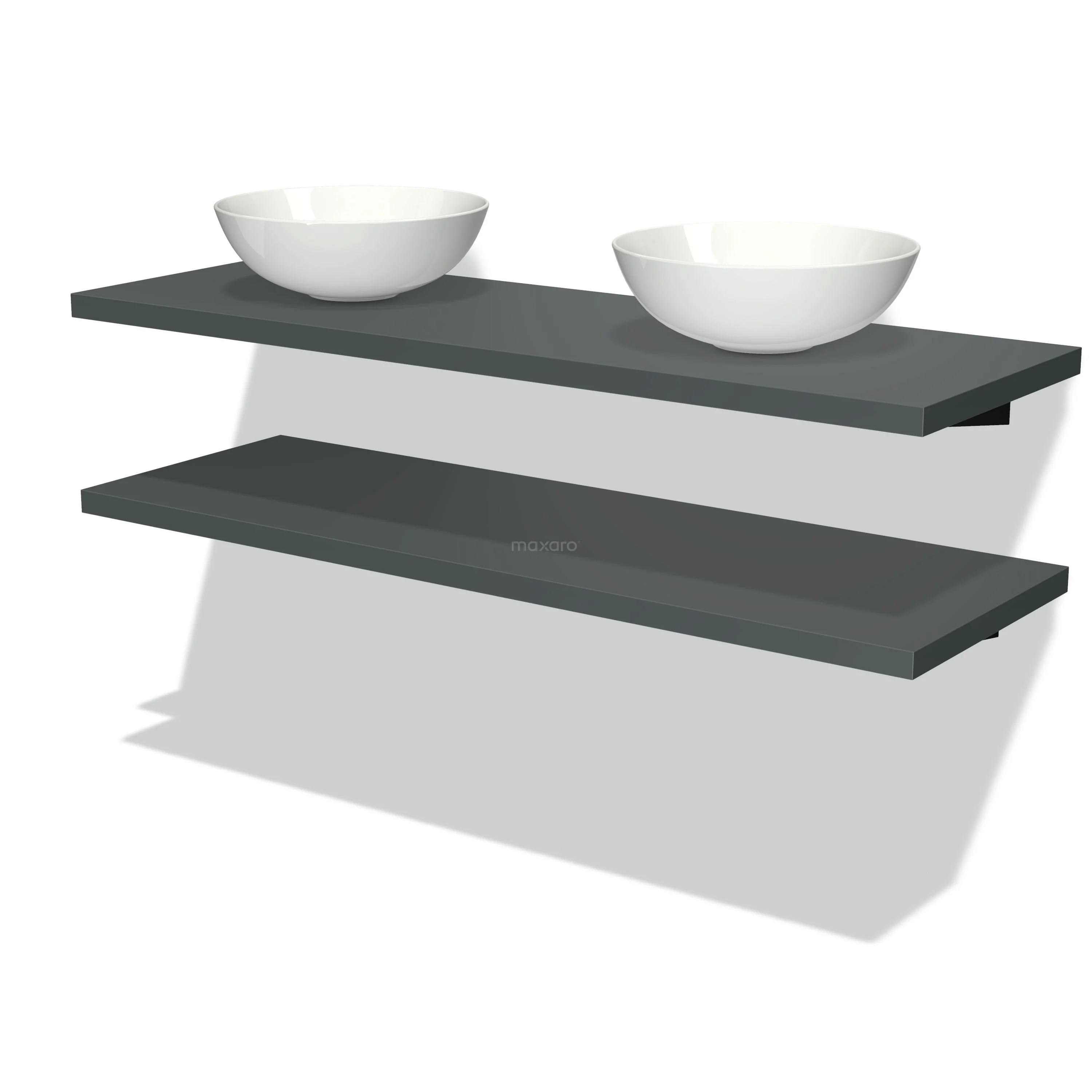 Modulo Plato Badmöbel mit Aufsatzwaschbecken | 140 cm Dunkelgrau front Dunkelgrau blatt 2 Waschtischplatten