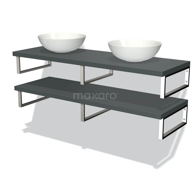 Modulo Plato Badmöbel mit Aufsatzwaschbecken | 140 cm Dunkelgrau front Dunkelgrau blatt 2 Waschtischplatten