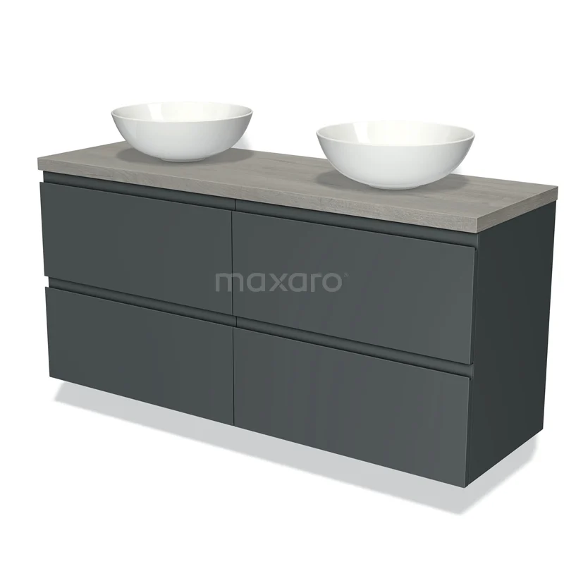 Modulo Plato Badmöbel mit Aufsatzwaschbecken | 140 cm Dunkelgrau Grifflos front Graue Eiche blatt 4 Schubladen