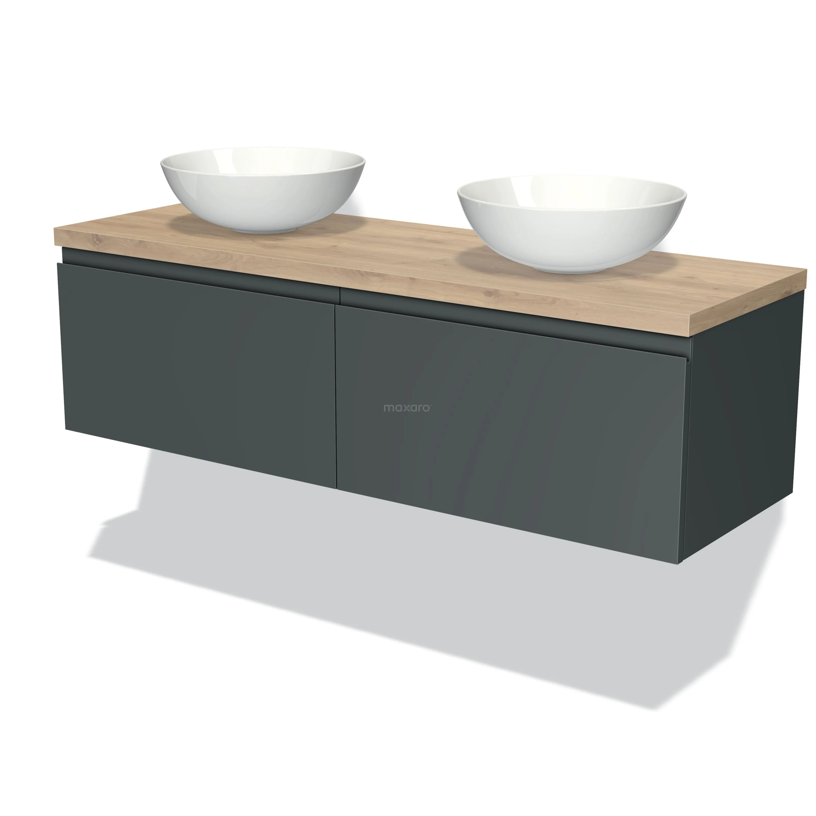 Modulo Plato Badmöbel mit Aufsatzwaschbecken | 140 cm Dunkelgrau Grifflos front Hellbraune Eiche blatt 2 nebeneinanderliegende Schubladen
