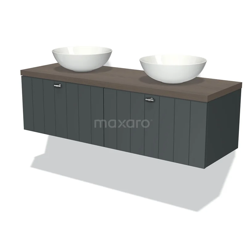 Modulo Plato Badmöbel mit Aufsatzwaschbecken | 140 cm Dunkelgrau Lamelle front Dunkelbraune Eiche blatt 2 nebeneinanderliegende Schubladen