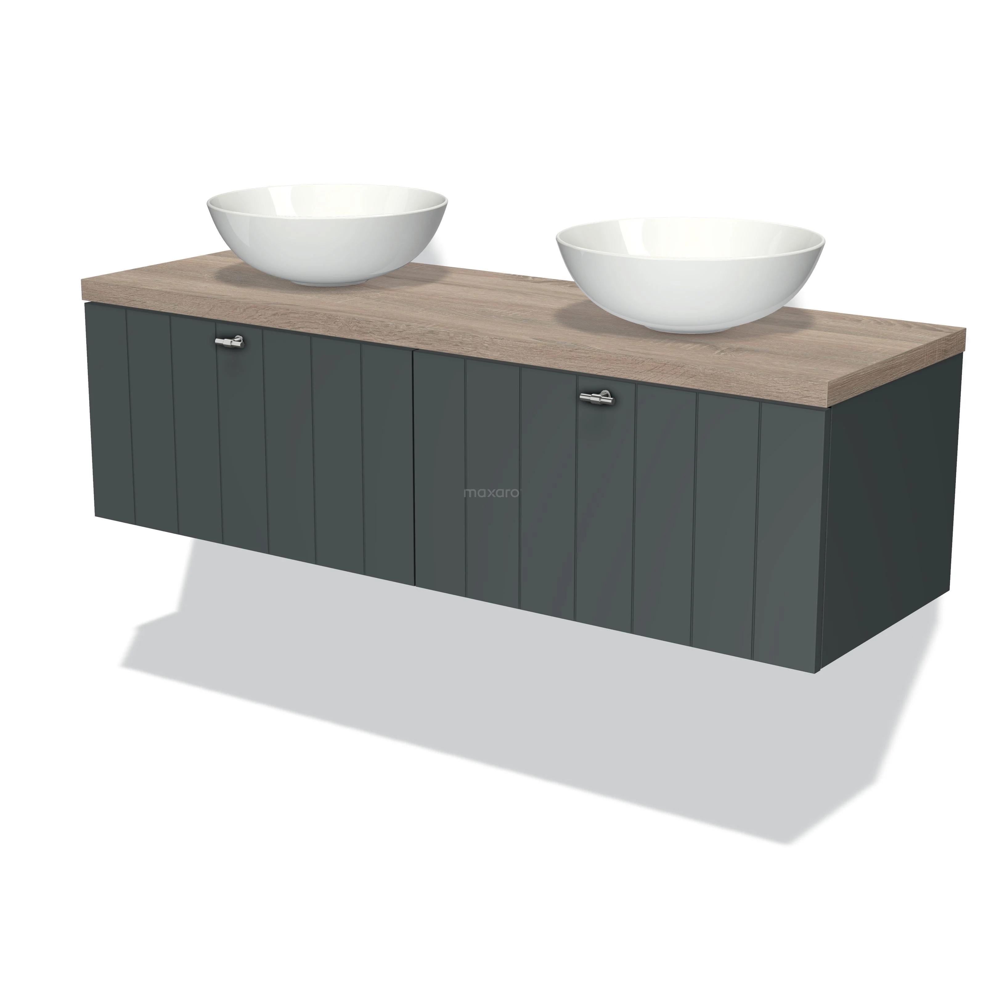 Modulo Plato Badmöbel mit Aufsatzwaschbecken | 140 cm Dunkelgrau Lamelle front Eiche blatt 2 nebeneinanderliegende Schubladen