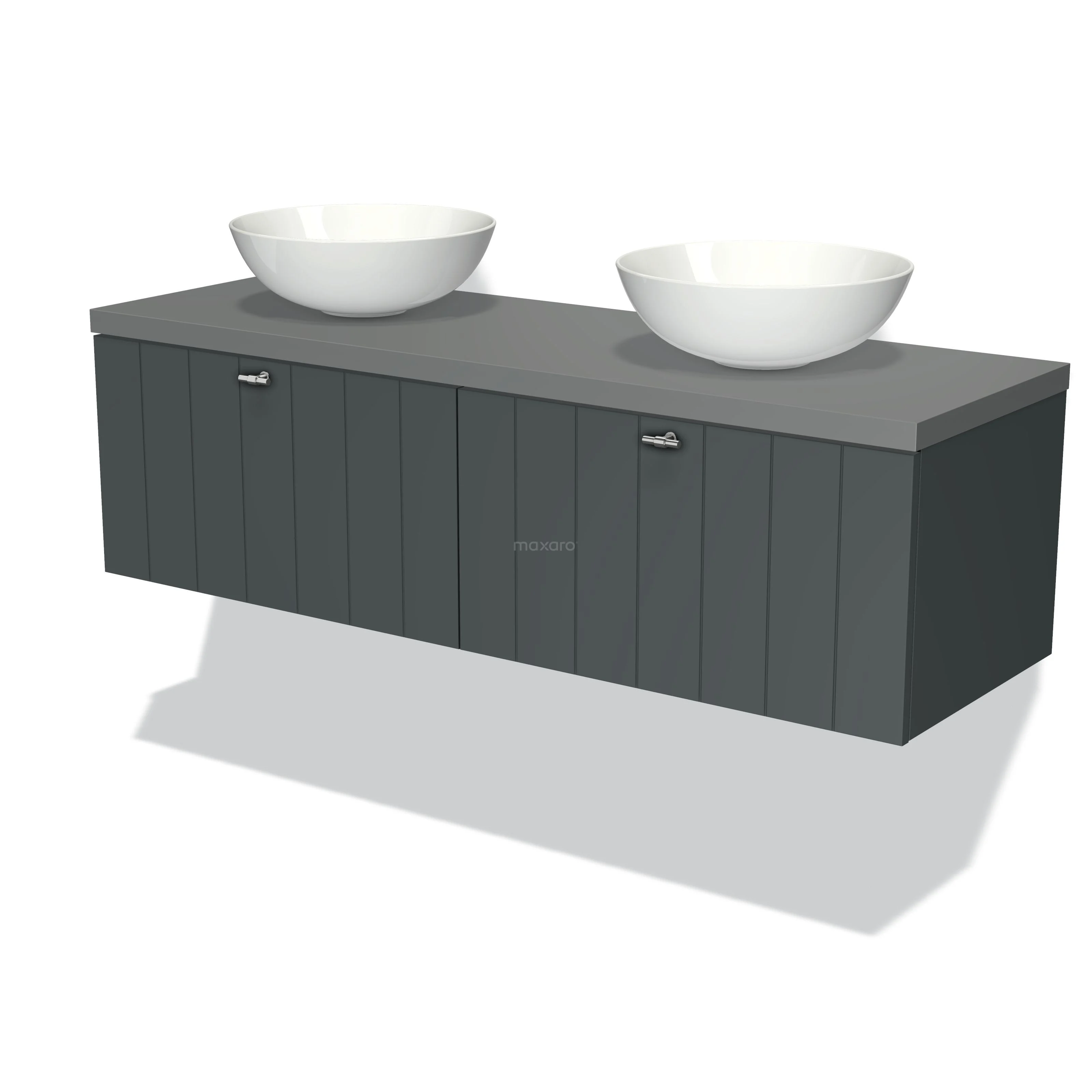 Modulo Plato Badmöbel mit Aufsatzwaschbecken | 140 cm Dunkelgrau Lamelle front Mittelgrau blatt 2 nebeneinanderliegende Schubladen