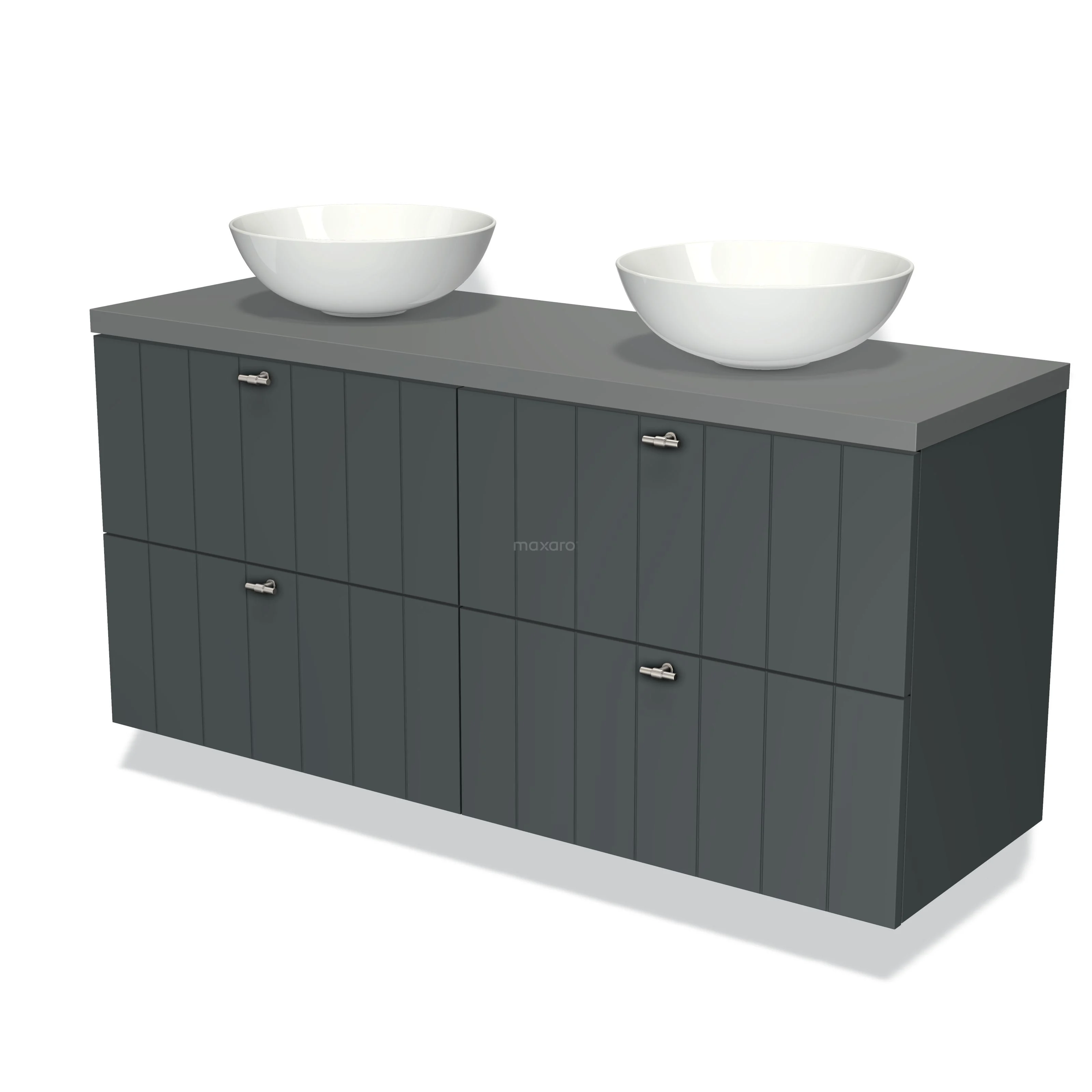 Modulo Plato Badmöbel mit Aufsatzwaschbecken | 140 cm Dunkelgrau Lamelle front Mittelgrau blatt 4 Schubladen
