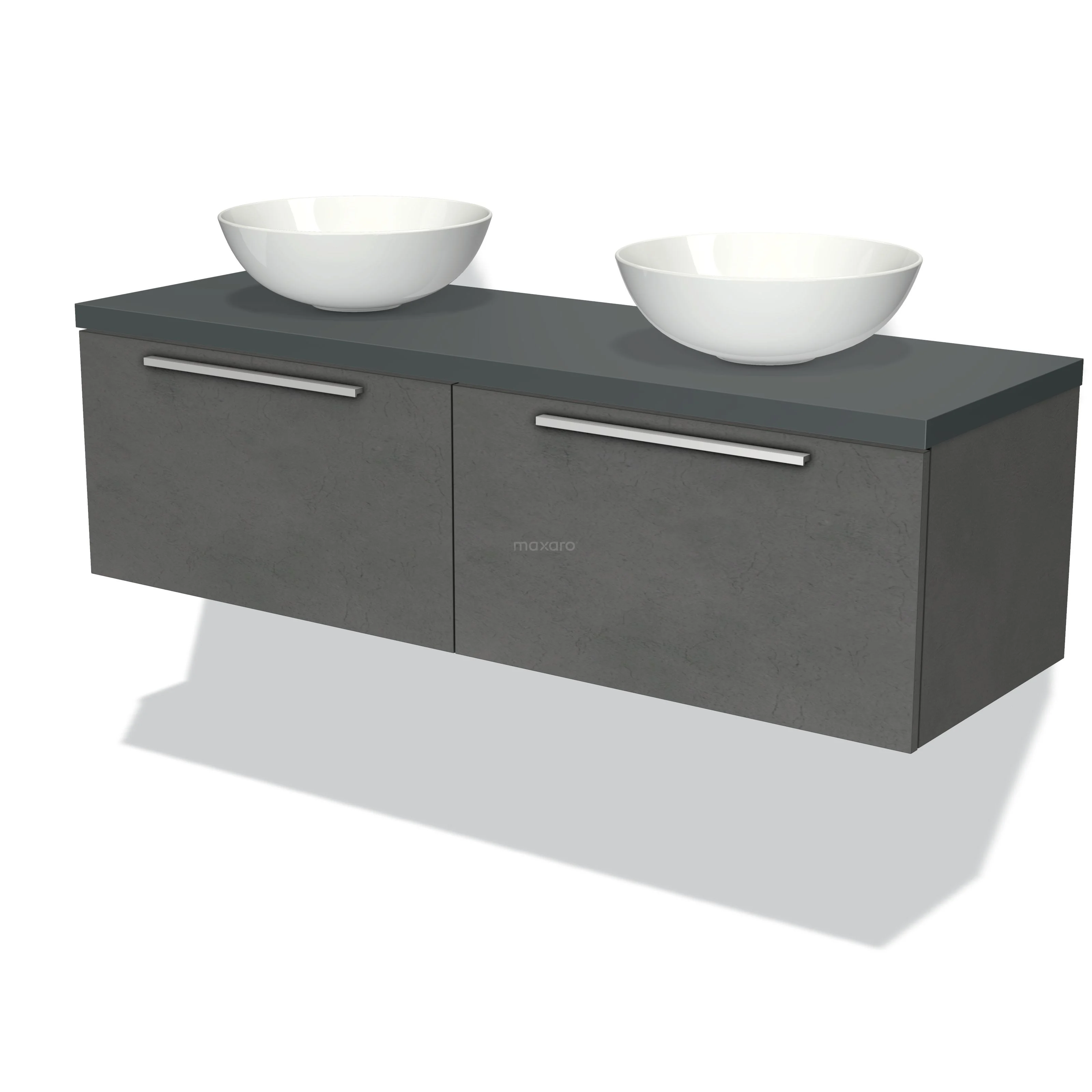Modulo Plato Badmöbel mit Aufsatzwaschbecken | 140 cm Dunkelgrauer Beton Flach front Dunkelgrau blatt 2 nebeneinanderliegende Schubladen