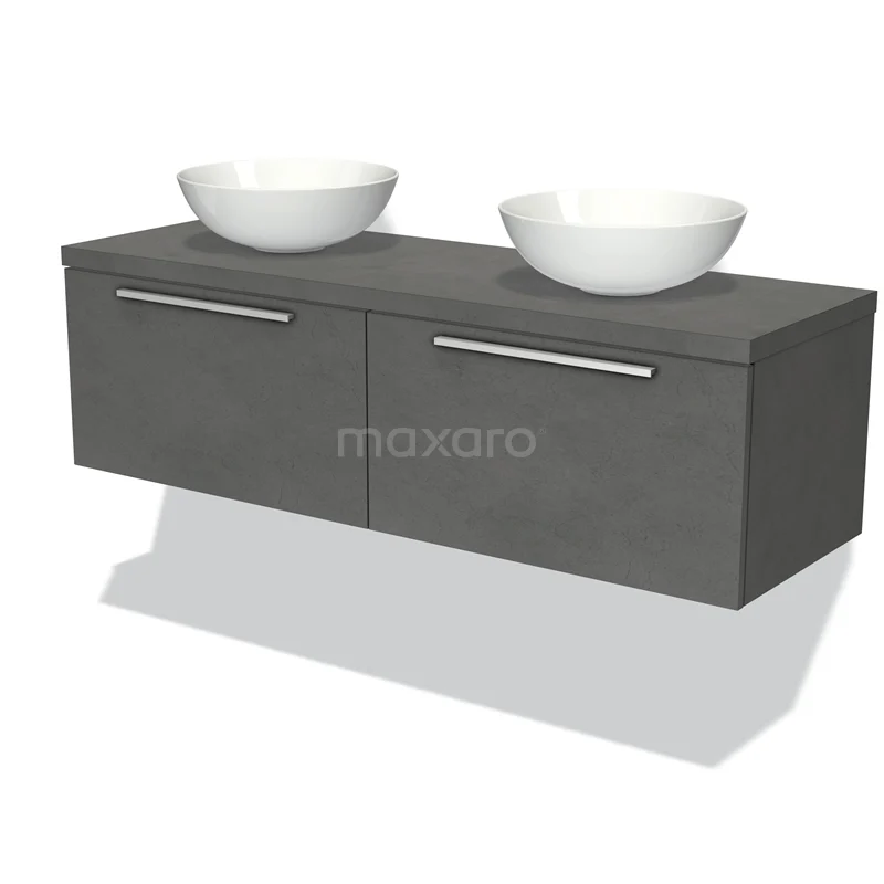 Modulo Plato Badmöbel mit Aufsatzwaschbecken | 140 cm Dunkelgrauer Beton Flach front Dunkelgrauer Beton blatt 2 nebeneinanderliegende Schubladen