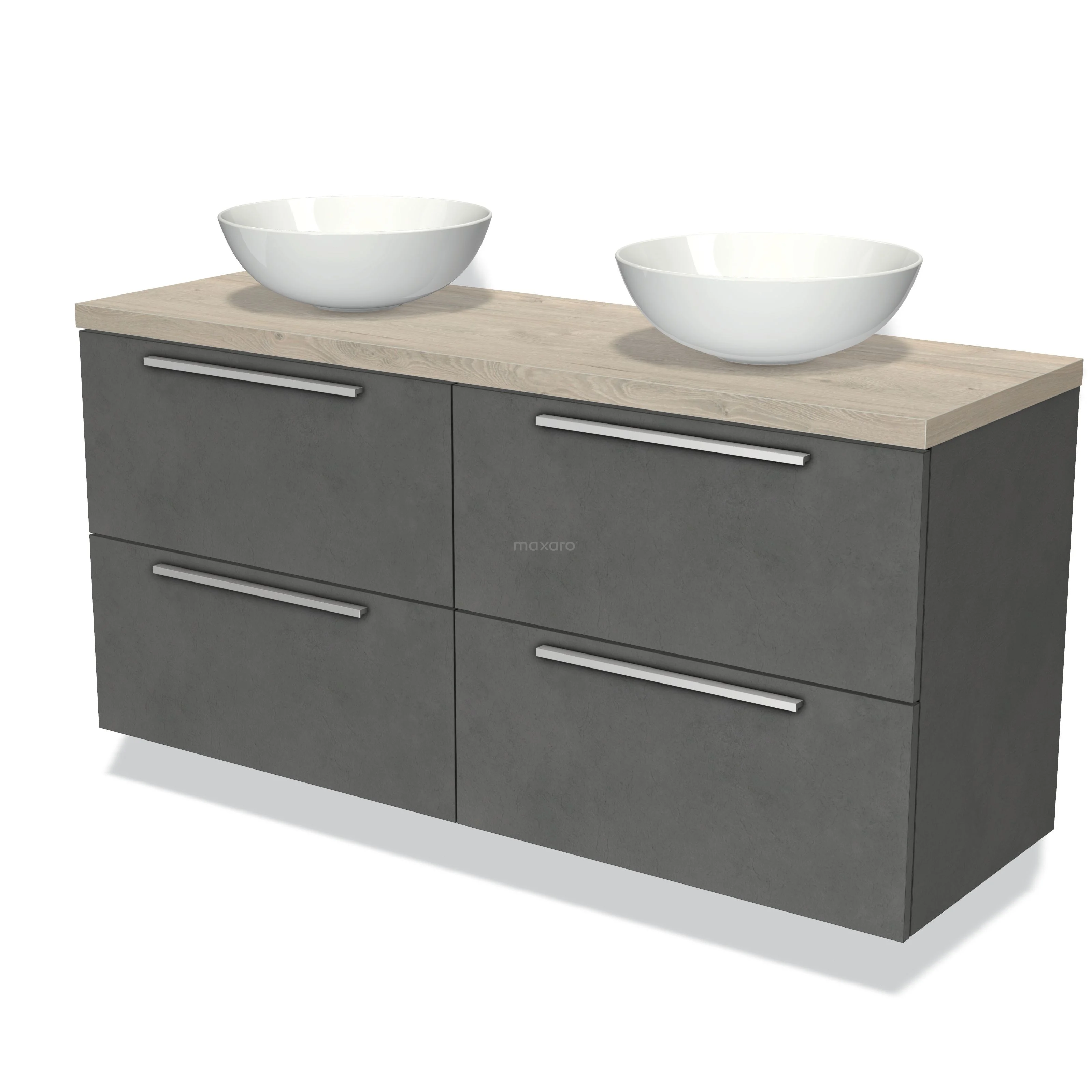 Modulo Plato Badmöbel mit Aufsatzwaschbecken | 140 cm Dunkelgrauer Beton Flach front Hellgraue Eiche blatt 4 Schubladen